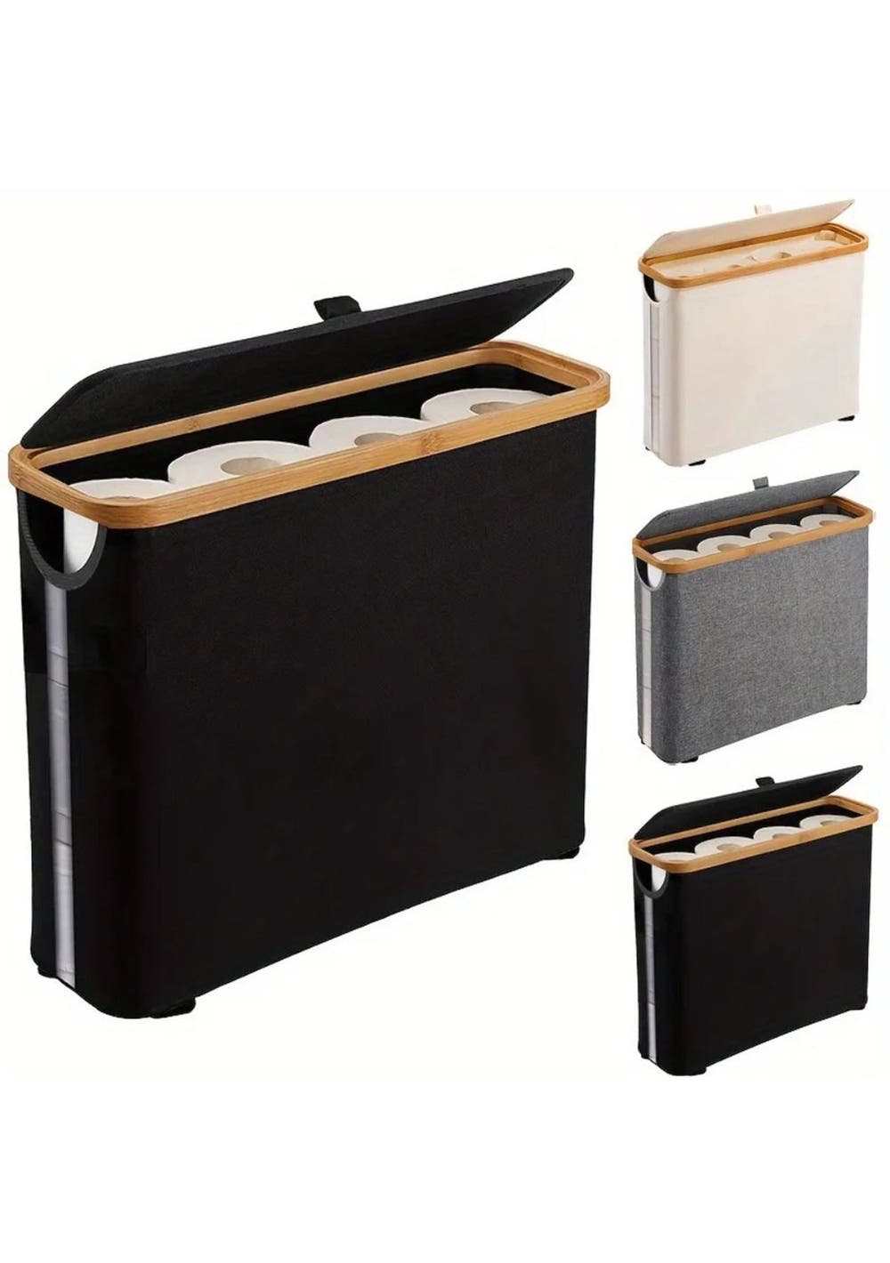 Large Capacity Toilet Rolls Paper Storage Basket with Lid for Bathroom Organizer - Black