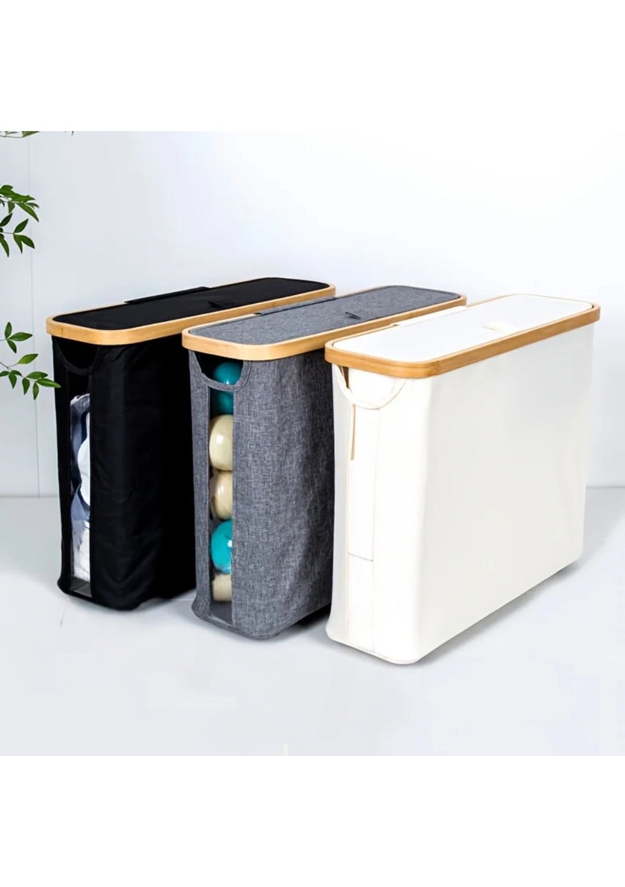 The Toilet Paper Basket is the ideal storage solution for maintaining a tidy and organized bathroom. Designed with a minimalist shape, it fits easily into small spaces while offering generous storage capacity. Capable of holding up to 12 toilet paper rolls, it keeps essentials within reach without creating clutter.The basket is made from durable Oxford fabric paired with sturdy wooden rings, making it both lightweight and stable. Its fabric construction ensures flexibility, while the wood accents add a touch of natural style suitable for any bathroom décor.A cloth cover is included to shield stored items from dust, helping maintain cleanliness and hygiene. The non-slip bottom ensures the basket stays securely in place, preventing movement even when full, so your toilet paper remains neatly stacked and accessible.This toilet paper storage basket is easy to move and simple to maintain. Its foldable design allows for compact storage when not in use, making it a practical choice for bathrooms of any size.Product Specification:Material: Oxford Cloth + WoodColor: Black, Beige, GreySize: 45 x 15 x 38 cmWeight: 800gFunction: Toilet Paper BasketPackage Inclusion:1 x Toilet Paper Basket