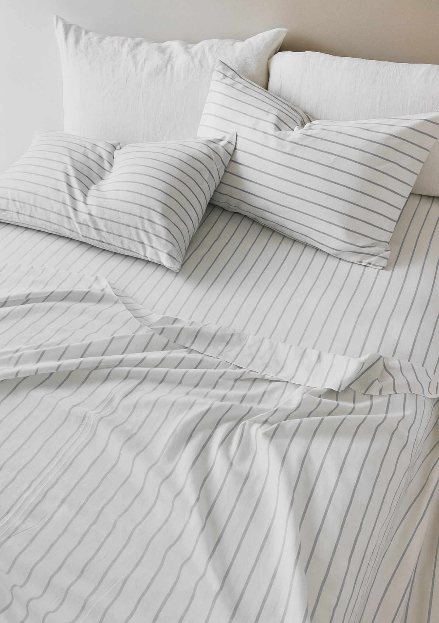 Designed Exclusively for Onceit and made from the finest quality 100% Cotton 250 TC. Includes 1 x flat sheet, 1 x ftted sheet + Pillowcases. Yes it Includes matching pillowcases! Comes in a Matching Fabric Bag. 100% Cotton stripe is a fabulous, super soft, natural fabric making it extremely popular with many for an all year round perfect addition to your bedroom.