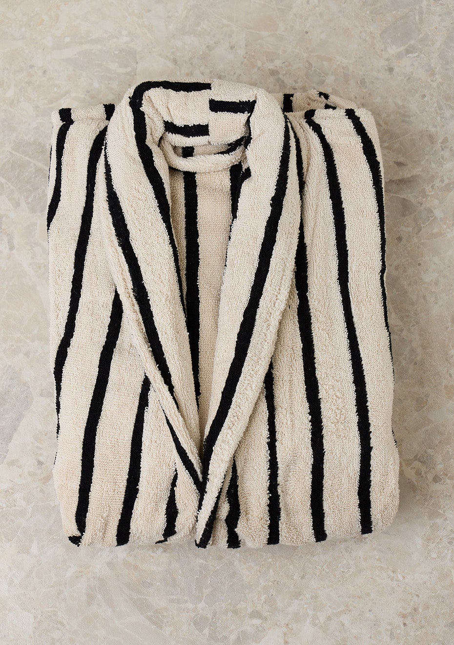 Wrap yourself in comfort and style with the George Collective Bath Robe. Made from 100% soft, breathable cotton, this robe is perfect for cozy mornings, post-shower relaxation, or lounging by the pool. Size: M/L Material: 100% Cotton Design: black stripe