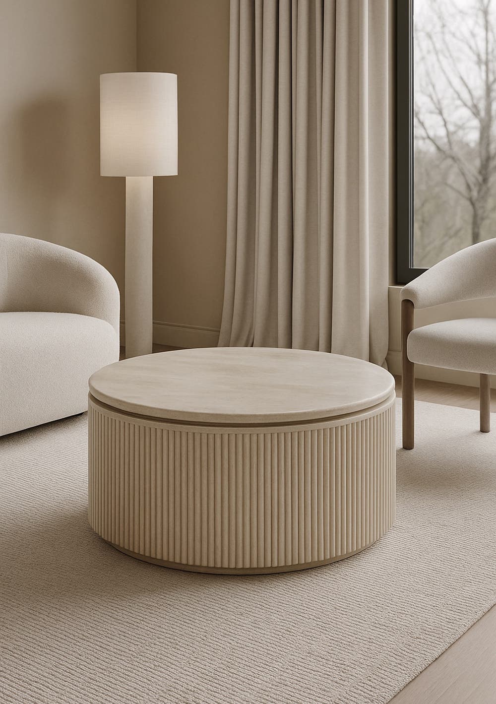 George Collective - Celine Round Ribbed 100cm - Travertine Look