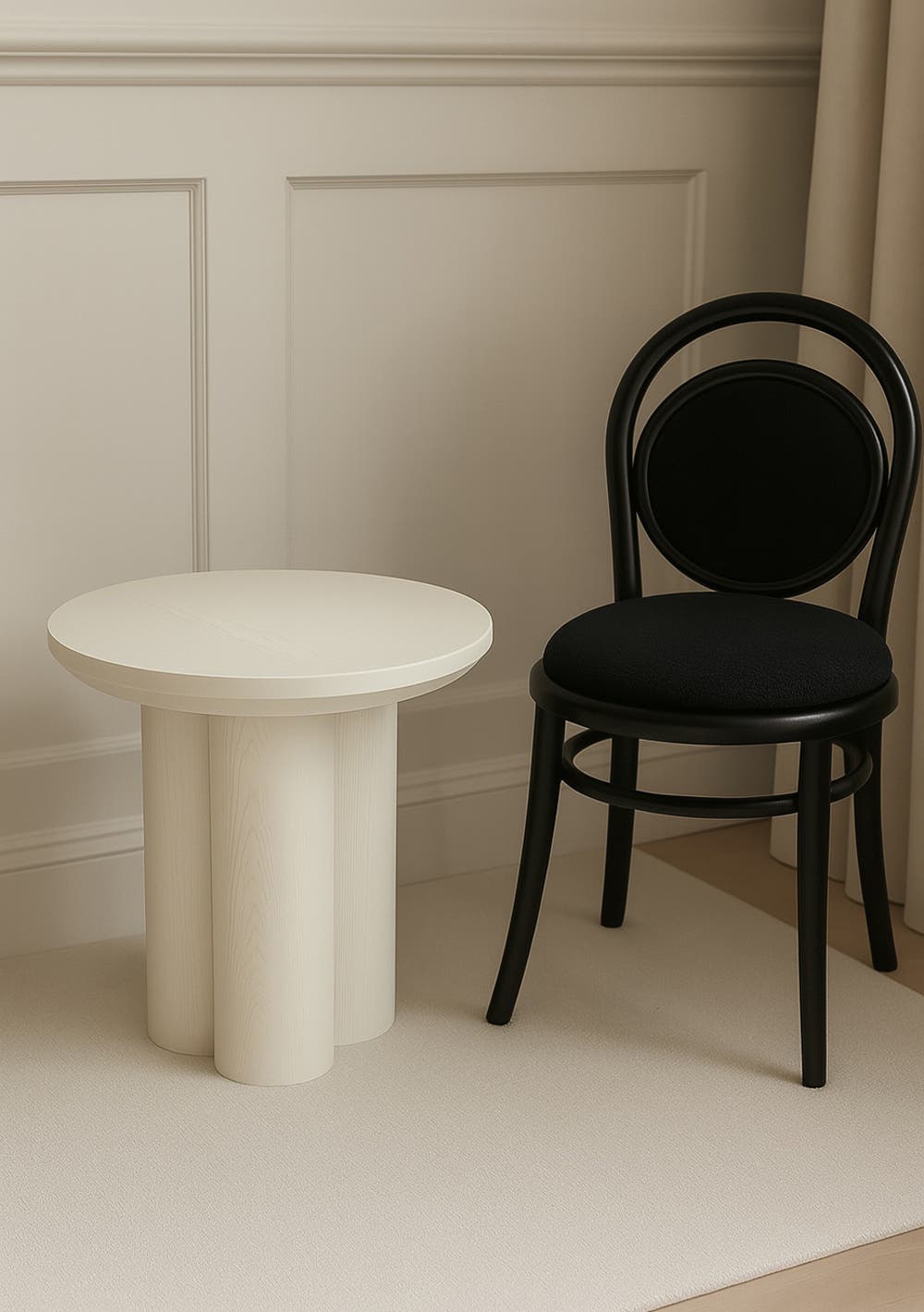 Our George Collective brand is a contemporary and premium range for the home. Defined by architectural presence and minimalist sophistication, this table brings modern luxury to any setting. Featuring a beautifully crafted top—available in a range of shapes—this piece is finished in a premium wood veneer that highlights the natural grain and texture of fine wood. The distinctive pedestal base, composed of sculptural cylindrical forms, delivers both visual impact and balanced support. Equally suited for dining, meeting, or display, this table’s timeless silhouette and neutral tones make it a seamless fit in contemporary, transitional, or curated interior spaces. Product Size (Assembled): 55cm diameter x 55cm Product Packaging Size: Carton 1: 63x64x10cm 6kg Carton 2: 46x23x55cm 9kg Material MDF with Wood Veneer Care Instructions: Wipe spilled liquids immediately with a soft, slightly damp cloth in the direction of the wood grain. For stone surfaces, soak liquids up with a paper towel and wipe dry to avoid any staining. Avoid harsh commercial cleaners, glass cleaners and spray polishes. Recommended to use coasteres or placemats to protect the table finish.