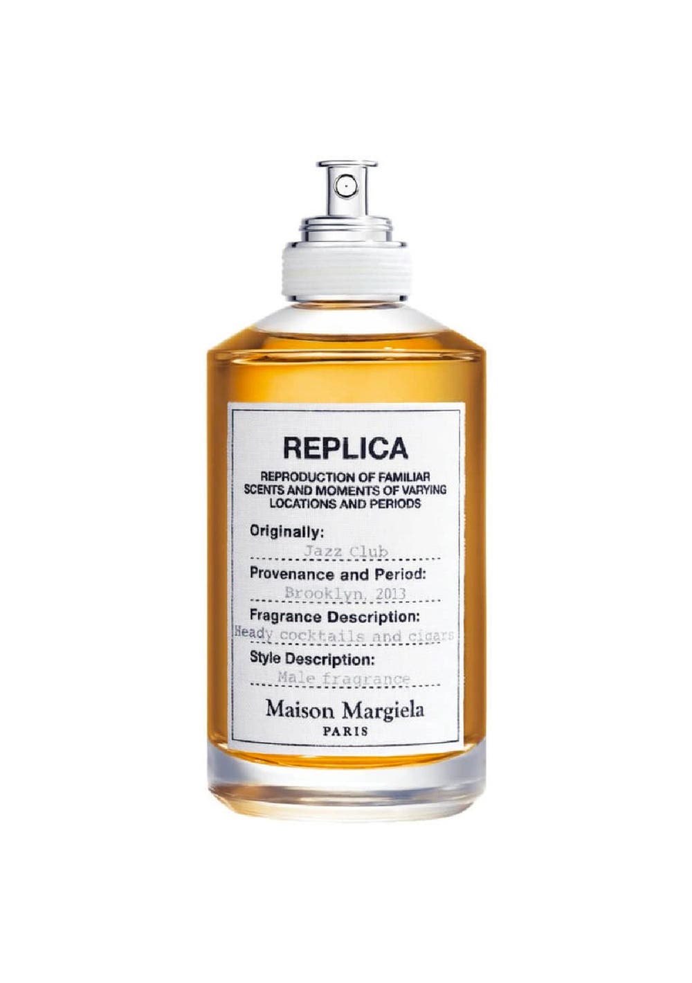 Maison Margiela's Replica Jazz Club recreates the ambiance and atmosphere of a cozy jazz club. Maison Margiela's Replica Jazz Club is designed to evoke the scent and mood of an intimate jazz club, with its warm and sensual fragrance composition. It seeks to capture the experience of enjoying live music, the dimly lit atmosphere, and the mingling scents of leather, tobacco, and cocktails. The key notes in Maison Margiela Replica Jazz Club include: Pink Pepper: This note adds a spicy and slightly fruity element to the fragrance, providing a subtle kick. Rum: The note of rum contributes a boozy and rich quality, reminiscent of sipping on a well-crafted cocktail. Tobacco Leaf: Tobacco leaf provides a smoky, earthy, and slightly sweet aroma, adding depth and sophistication. Vanilla: Vanilla adds a creamy and comforting aspect to the fragrance, enhancing its overall warmth. Tonka Bean: Tonka bean offers a sweet and almond-like scent, imparting a touch of gourmand allure. These notes, combined with other supporting accords, create a fragrance that aims to transport you to the captivating world of a jazz club, enveloping you in a sensual and sophisticated atmosphere.