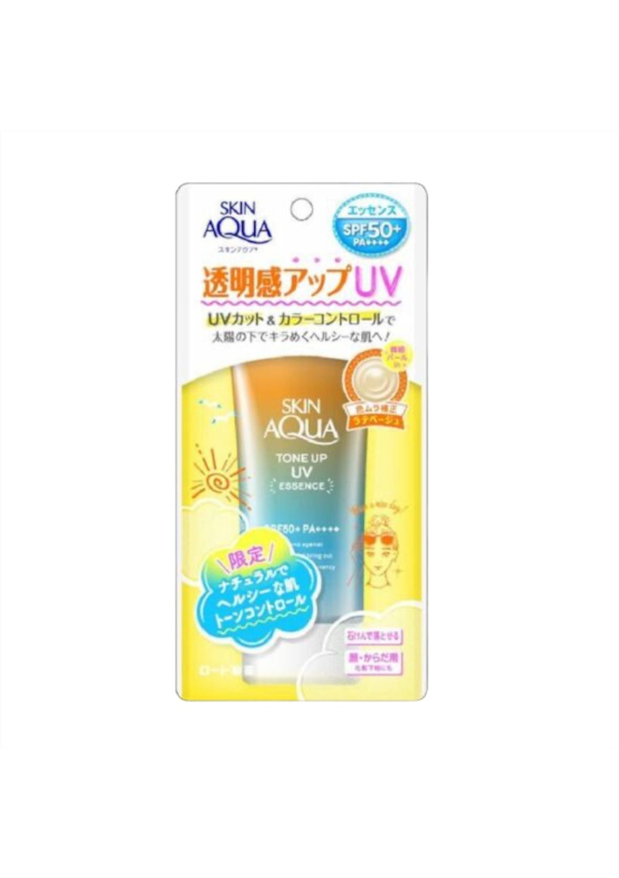 Rohto Skin Aqua Tone-up Latte Beige Sunscreen SPF50+ PA++++ provides high-level sun protection while offering a tone-up effect with a natural-looking latte beige tint. The sunscreen is formulated with an SPF of 50+ and PA++++, providing broad-spectrum protection against UVA and UVB rays. This helps to prevent sunburn, skin damage, and premature aging caused by sun exposure. In addition to sun protection, the Tone-up Latte Beige Sunscreen offers a tone-up effect with a latte beige tint. The tint helps to even out the skin tone and provides a natural-looking coverage, giving the skin a smoother and more refined appearance. The lightweight formula absorbs quickly into the skin, leaving a matte finish without a heavy or greasy feeling. To use the Rohto Skin Aqua Tone-up Latte Beige Sunscreen, apply an appropriate amount onto the face and exposed areas of the body before sun exposure. Reapply as needed, especially after swimming, sweating, or towel-drying.