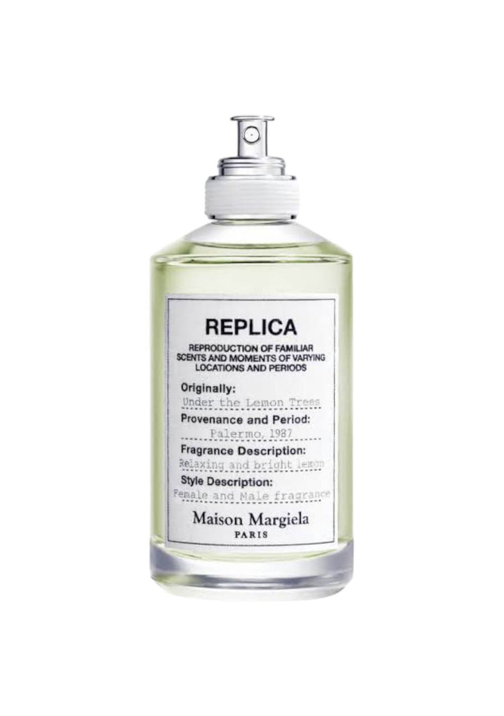 Maison Margiela's Replica Under The Lemon Tree is designed to remember a sunny escape in a field of brightening lemon trees. Under the Lemon Trees evokes a relaxing breath in the shade of their refreshing green leaves. The fragrance is a sharp scent composed as an imaginary lemon tree made of fresh and invigorating notes of citrus mixted with green notes of coriander, Mate absolute and tea leaves. A woody trail with hints of cedar and white musks complete the evocation of this Mediterranean symbol.Here is a parenthesis with a scent of dolce vita.Top notes: Kalamansi Flavor Accord, PetitGrain Essence, Cardamom EssenceMiddle notes: Coriander Essence, Mate Absolute, Green Tea ExtractBase notes: Cedarwood Essence, Citrus Absolute, Musks