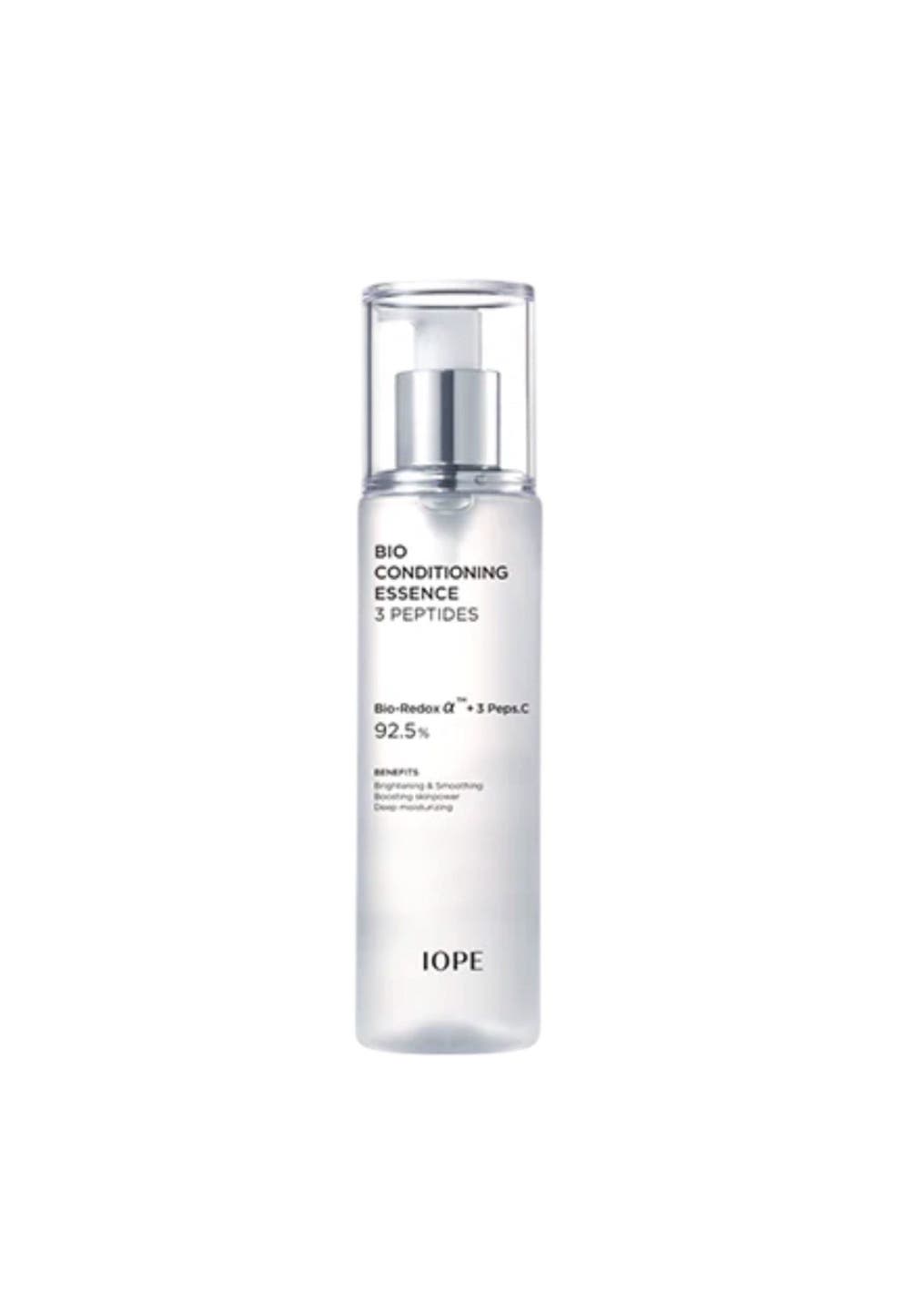 IOPE Bio Conditioning Essence 3 Peptides is the first-step essence to restore the skins natural translucency by purifying the skin and filling it up with anti-oxidant ingredients. Formulated with Bio-Redox A and 92.5% Peps. C to imitate the anti-oxidant environment of the skin to improve the antioxidant power of your skin and provide a clear and translucent complexion. The watery textured essence sets up the skin for the next steps of your routine with light and quick absorption, to keep the skin well hydrated. The lightweight essence takes intensive care of your skin's texture, moisture and condition to result in a dense, shiny and translucent skin base. Key Points: Bio-Redox A EnzymeBright and smooth skinLight, water textureFast absorptionDeep and long-lasting moistureRecharges skin's natural strengthEven out skin toneInstant boost in hydrationFasten skin healingNon-greasyHydrate and prep skinSize: 252ml
