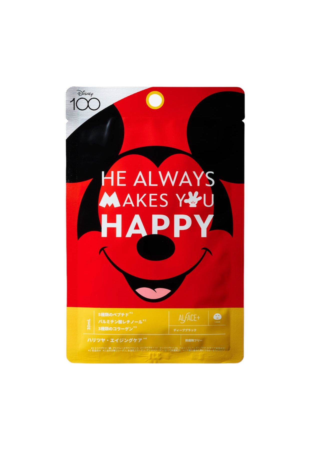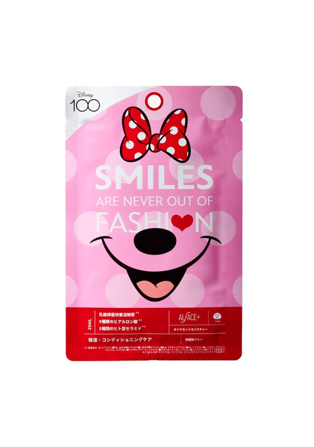 A limited-edition special box designed with the theme of Disney 100.The packaging of the six types of face masks in the box also features popular Disney characters such as Mickey Mouse, Minnie Mouse, Winnie the Pooh, and Stitch, as well as Pixar characters such as Mike Wazowski and Sully from Monsters, Inc. Mini - Diamond MoistureFor moisturized, beautiful skin that does not succumb to fluctuations.Focuses on the power of beautiful skin bacteria.It improves the condition of skin that is easily affected by external stimuli such as dryness and ultraviolet rays.Recommended for: those who are concerned about dryness, those whose skin is easily unstable, those who are concerned about makeup coming off, those who are concerned about rough skin and flaking. Sally - Crystal MoistureFor clear, smooth, bright skin.Contains Galactomyces ferment solution and niacinamide.Improves the skin's moisture balance and texture, and cares for dull skin and rough skin.The mask removes dead skin cells, leaving skin with a smooth texture. Recommended for: those who are concerned about dullness, those who want to prevent rough skin, those who are concerned about uneven skin texture, and those who are concerned about UV damage. Stitch - Pure Black.For skin with a fresh, clear feel.The black sheet kneaded with bamboo charcoal purifies dirt and sebum from pores.It approaches the skin turbidity*10 caused by excess sebum and waste products from all directions.Recommended for: Those who are concerned about shine and stickiness due to excess sebum, those who are concerned about pores, those who have rough skin, and those who are concerned about lack of transparency. Mickey - Deep BlackFor bouncy, firm skin.A dense milk serum containing peptides and collagen that addresses signs of aging.It plumps up and conditions skin that is dry, lacks firmness, and has a deflated appearance.Recommended for: Those who are concerned about signs of aging, lack firmness, dryness, and lack of shine. Pooh - Yellow Essential MaskFor beautiful, vibrant skin.4 types of vitamin C derivatives and 4 types of vitamin B penetrate into every corner of the stratum corneum.Replenishes vitamins to troubled skin that is concerned about pores and transparency and keeps it healthy.Recommended for: Skin with a lack of vitality, open pores, lack of transparency, dryness. Mike - Sensitive MaskFor skin that is always in good condition.Containing CICA ingredients and Houttuynia cordata extract gently wraps the skin in a veil of moisture. Vegan formula.Cares for skin that is easily roughened by dryness or external stimuli, giving you confidence in your skin condition.Recommended for: Those who are concerned about rough skin and acne, those who are concerned about dryness, those who have sensitive skin, those who are concerned about redness and hot flashes on the skin.