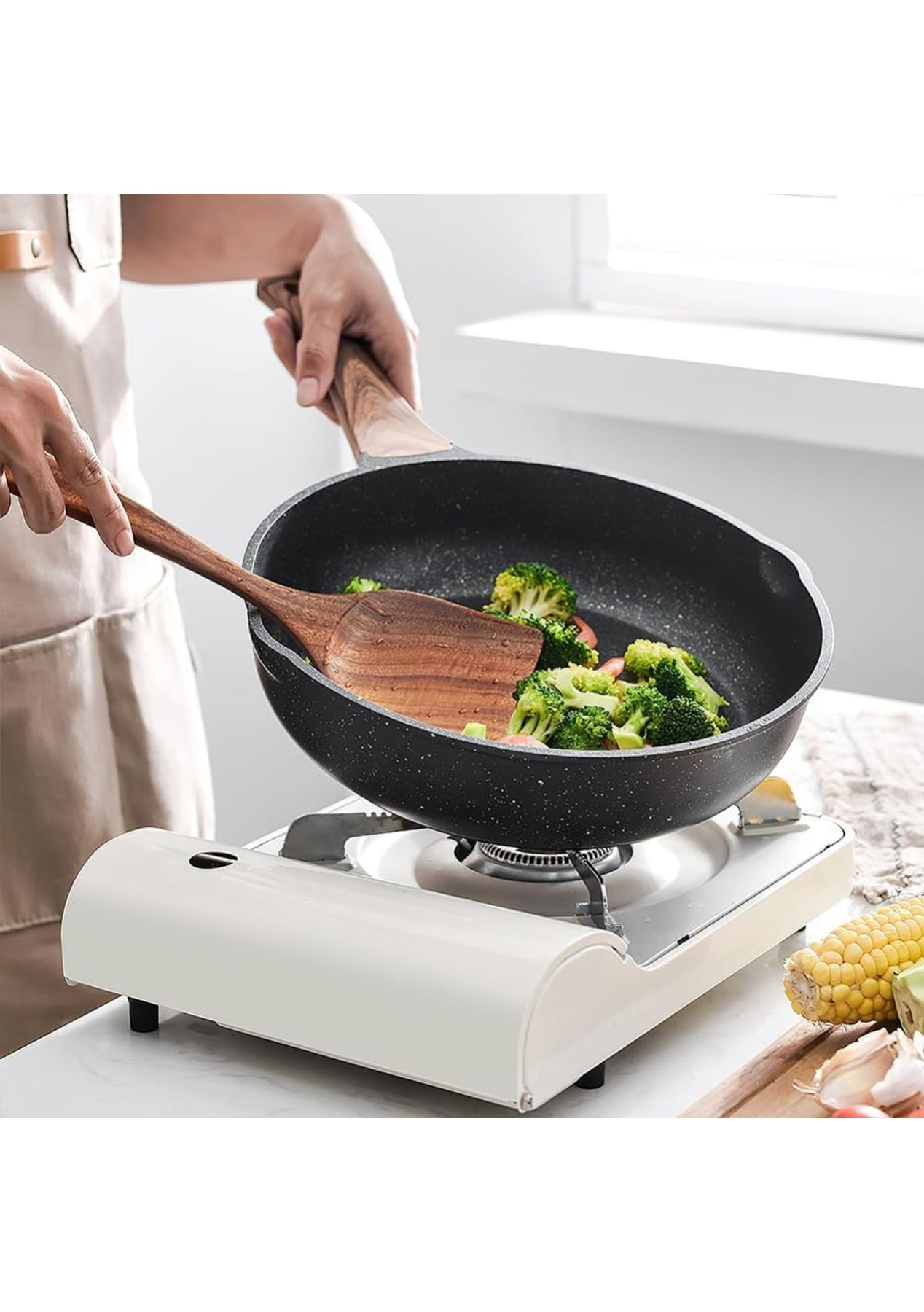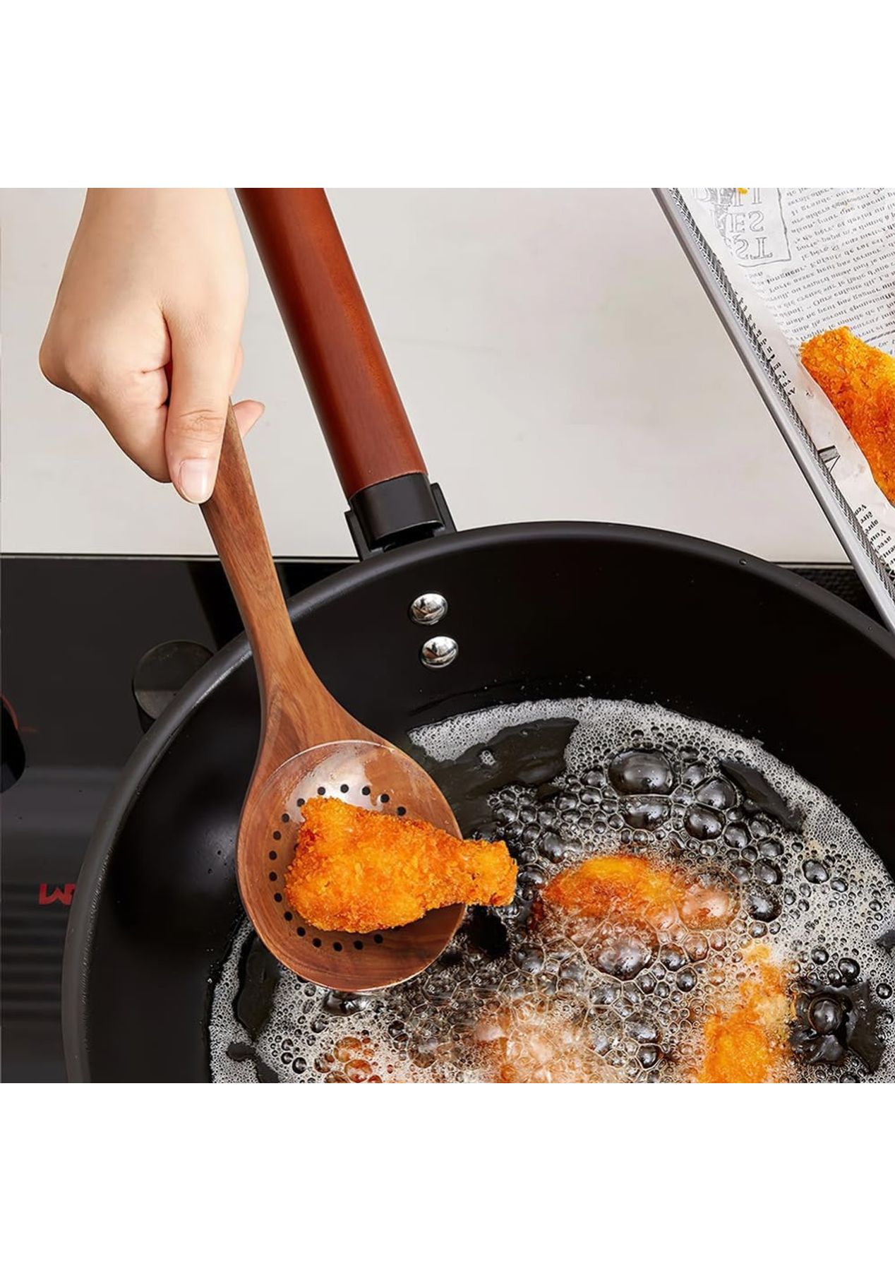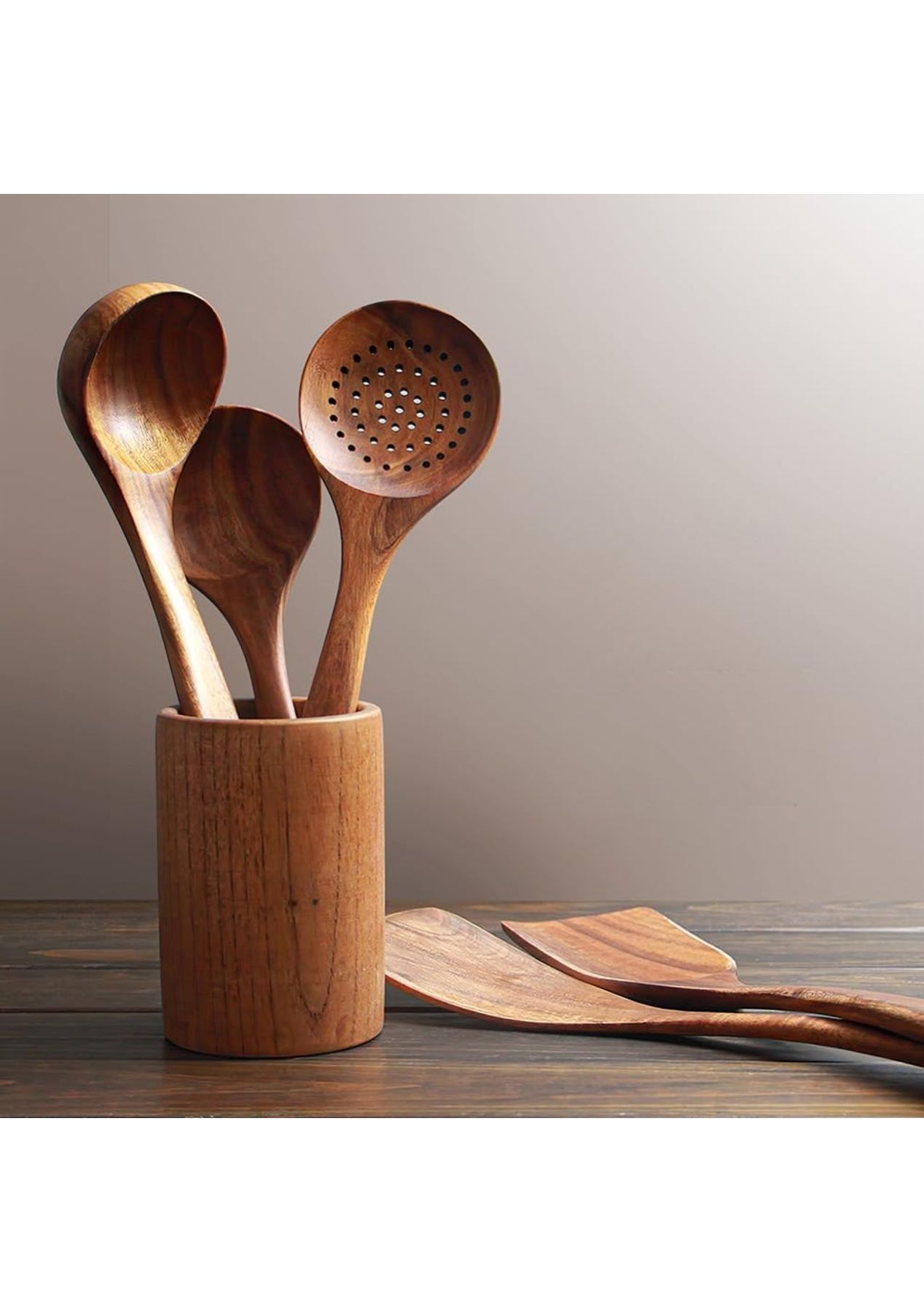 Crafted from close-grained teak with naturally high oil content, these utensils are highly durable and resistant to cracking or breaking. Whether you're stirring, flipping, or serving, this set provides reliable function with a timeless, rustic charm.Featuring a beautiful shape and a long handle, these tools are not only functional but also aesthetically pleasing. The delicate design makes them easy to grip, enhancing your cooking experience.These tools are safe for use on hot surfaces and compatible with various cooking surfaces, making them ideal for a wide range of culinary tasks in the kitchen or restaurant.With five stylish options available, these fancy kitchen tools make great gifts for yourself or friends. Their unique designs add a touch of elegance to any kitchen.Care for these tools is simple—just wash by hand with mild soap or water and store them in a dry place. This easy maintenance ensures they remain in excellent condition for long-term use.Product Specification:Material: WoodColor: BrownWooden Spatula Size: 8.5 x 34 cmFlat Spatula Size: 7.5 x 31.5 cmSlotted Spoon Size: 8.5 x 28.5 cmSoup Spoon Size: 8 x 26.5 cmRound Spoon Size: 7.5 x 23.5 cmWeight: 500gFunction: Kitchen Cooking ToolPackage Inclusion:1 x Wooden Spatula1 x Flat Spatula1 x Slotted Spoon1 x Soup Spoon1 x Round Spoon
