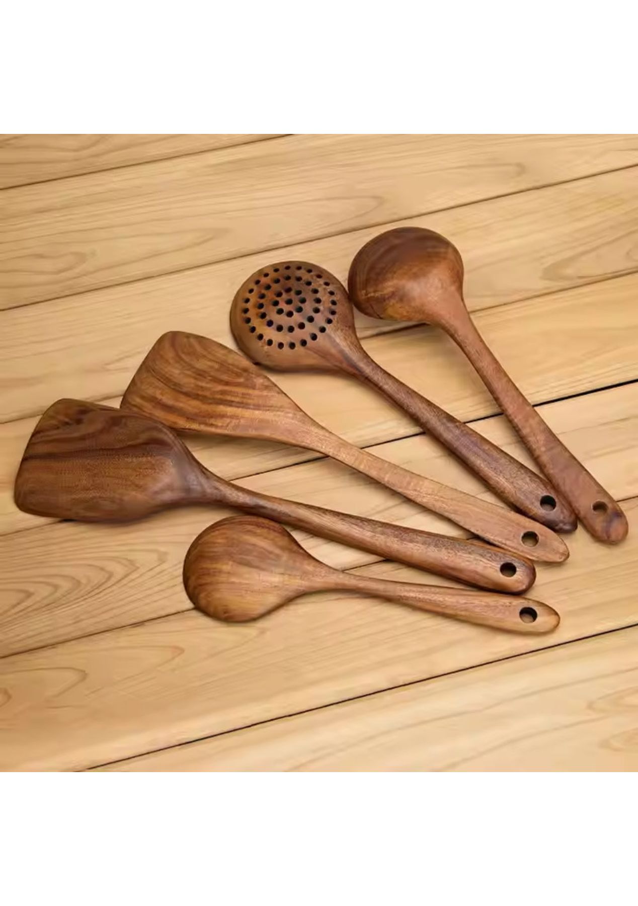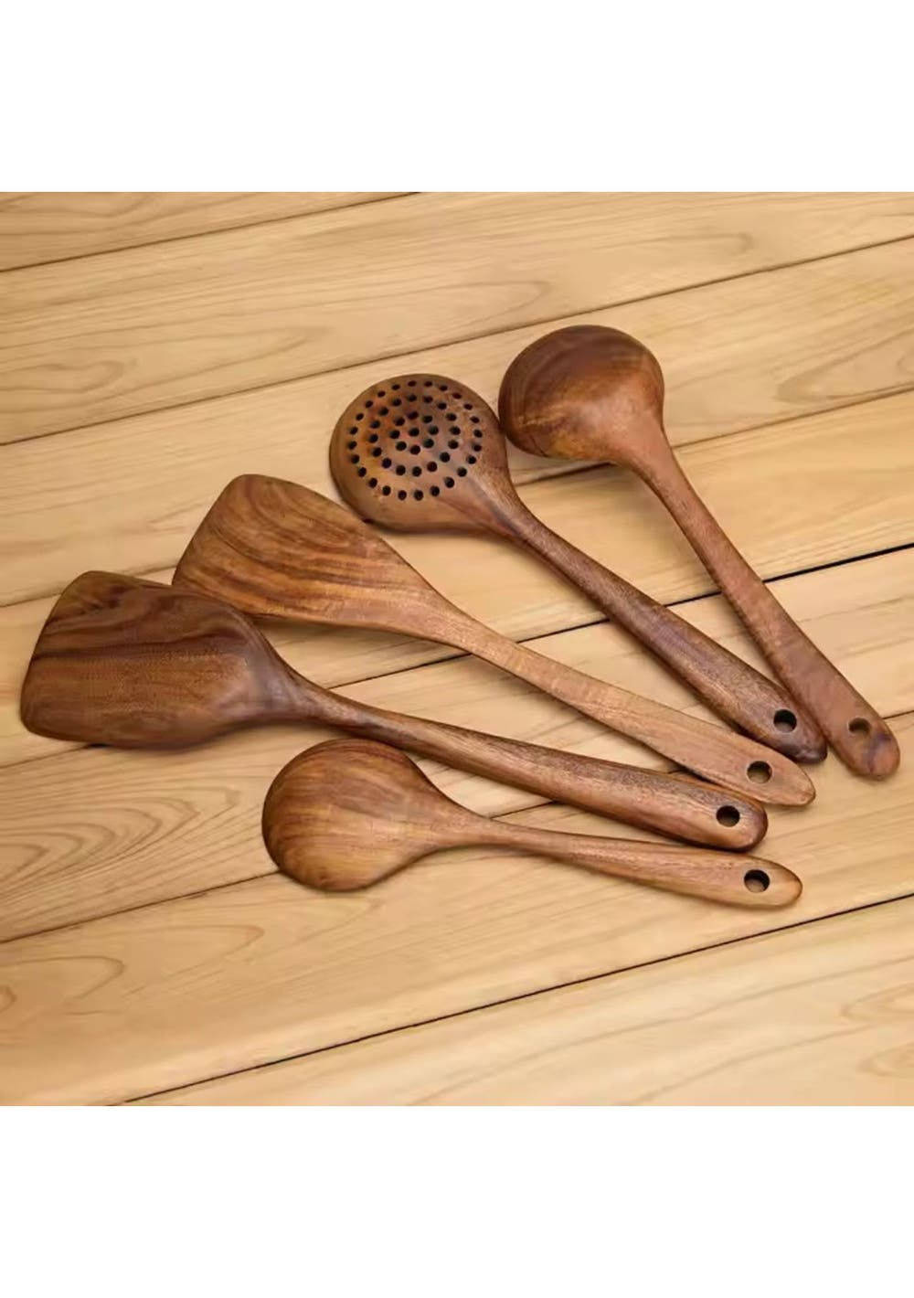 5pcs Teak Wood Tableware Cooking Spoon Kitchen Tool Kit - 5pcs