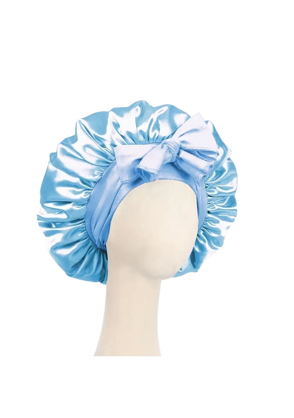 Satin Silk Bonnet Adjustable Sleeping Hair Bonne With Tie Band - Sky Blue