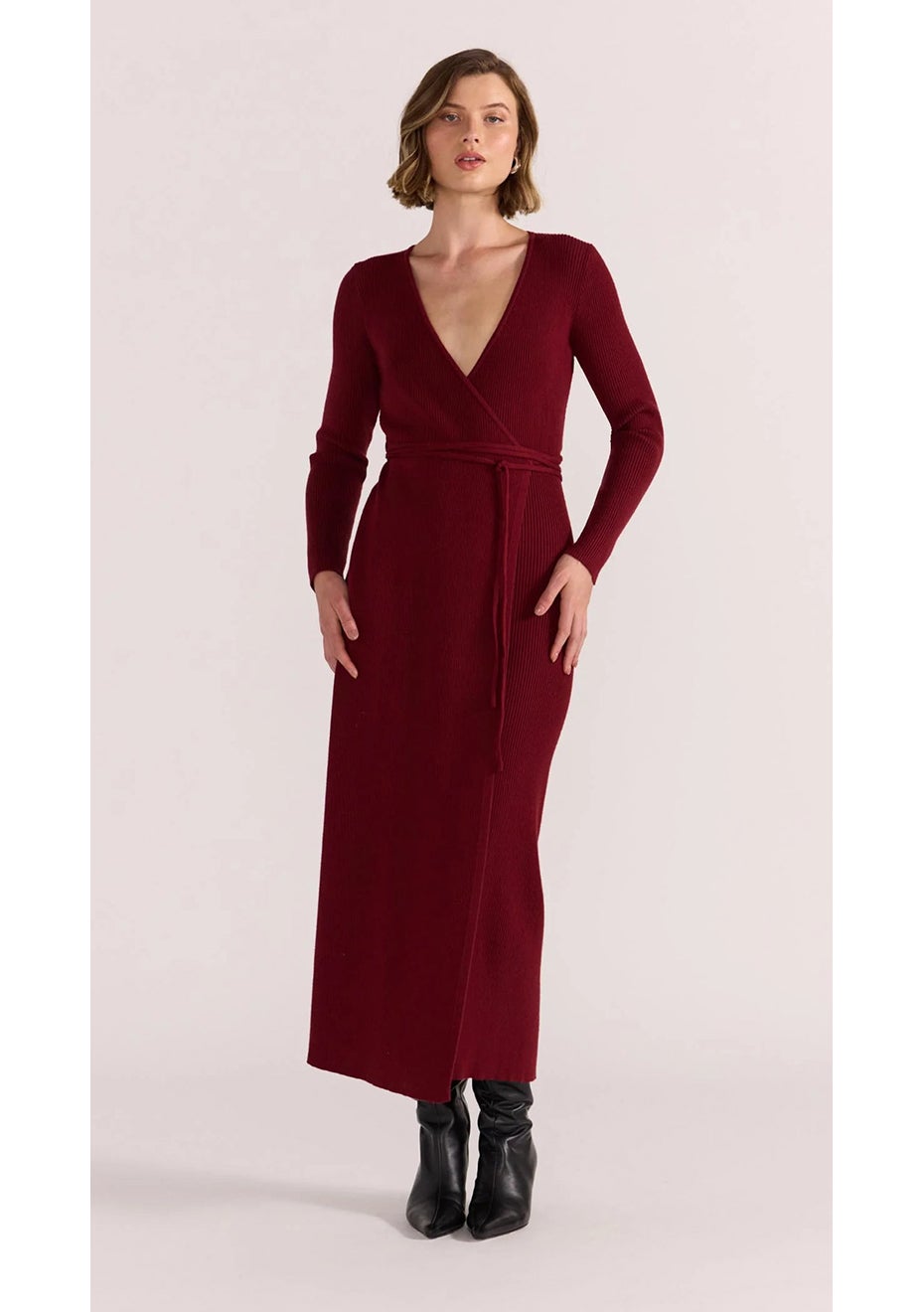 Staple The Label - Celeste Knit Wrap Dress - Wine