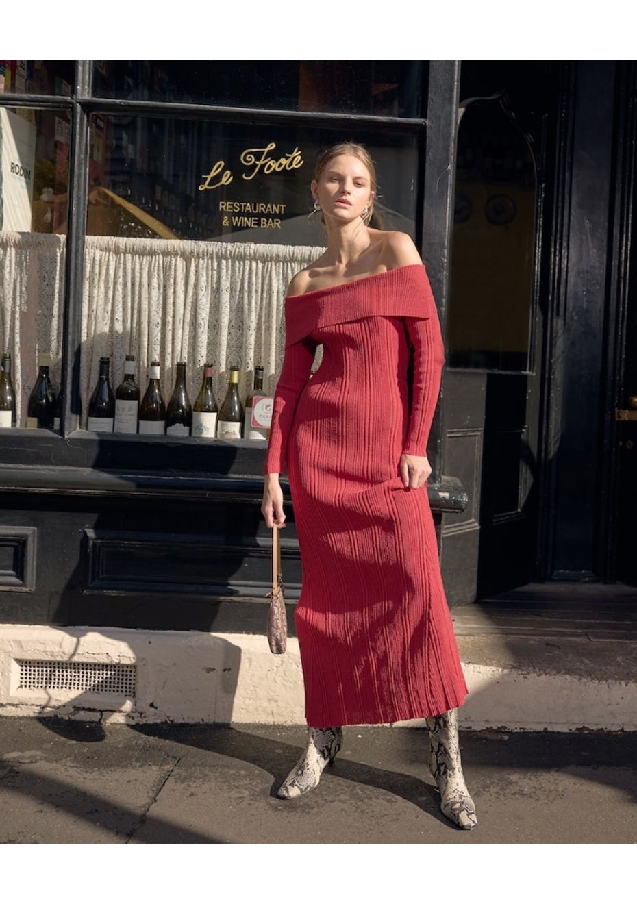 Staple The Label - Luna Off Shoulder Knit Dress - Red