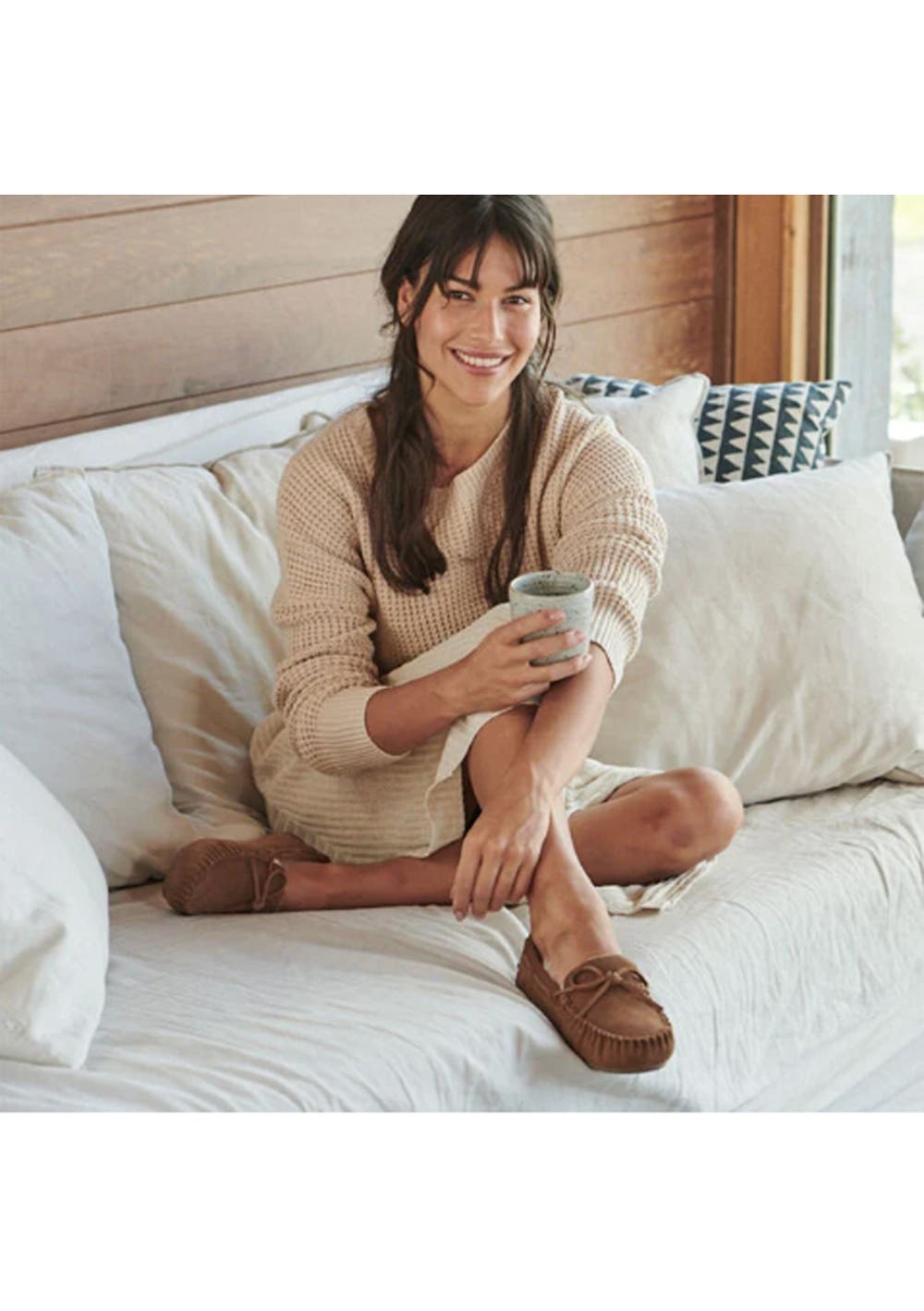 Elegantly simple and incredibly comfortable. These classic moccasin-style slippers offer the perfect blend of warmth and timeless style, designed for all-day comfort. Our slippers may feel firm at first, but soften with wear, for lasting comfort. Size advice