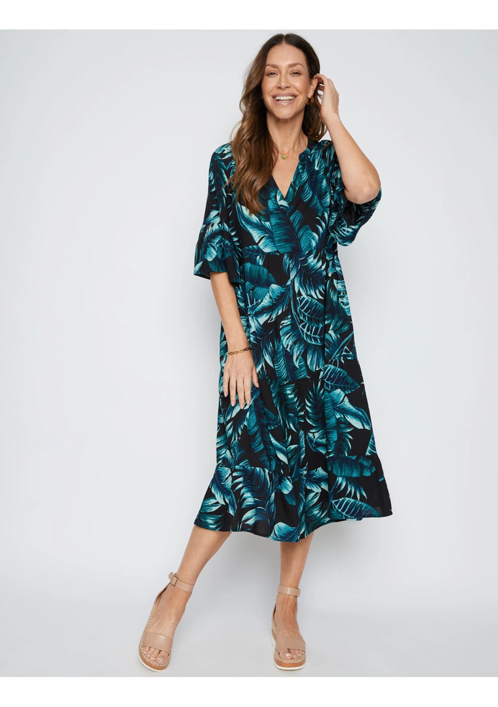 Winter Fashion Edit - 3/4 Sleeve Tiered Midi Dress - Black