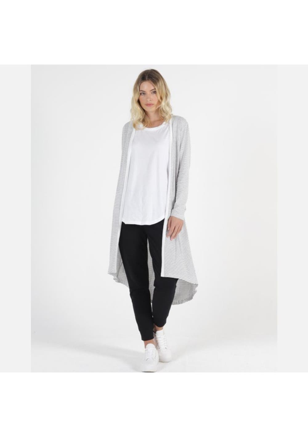 Betty Basics - Scarlett Cardigan - White / Black Stripe