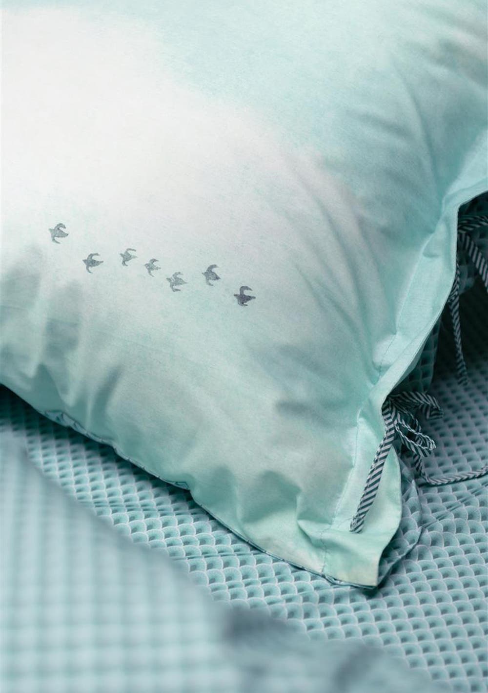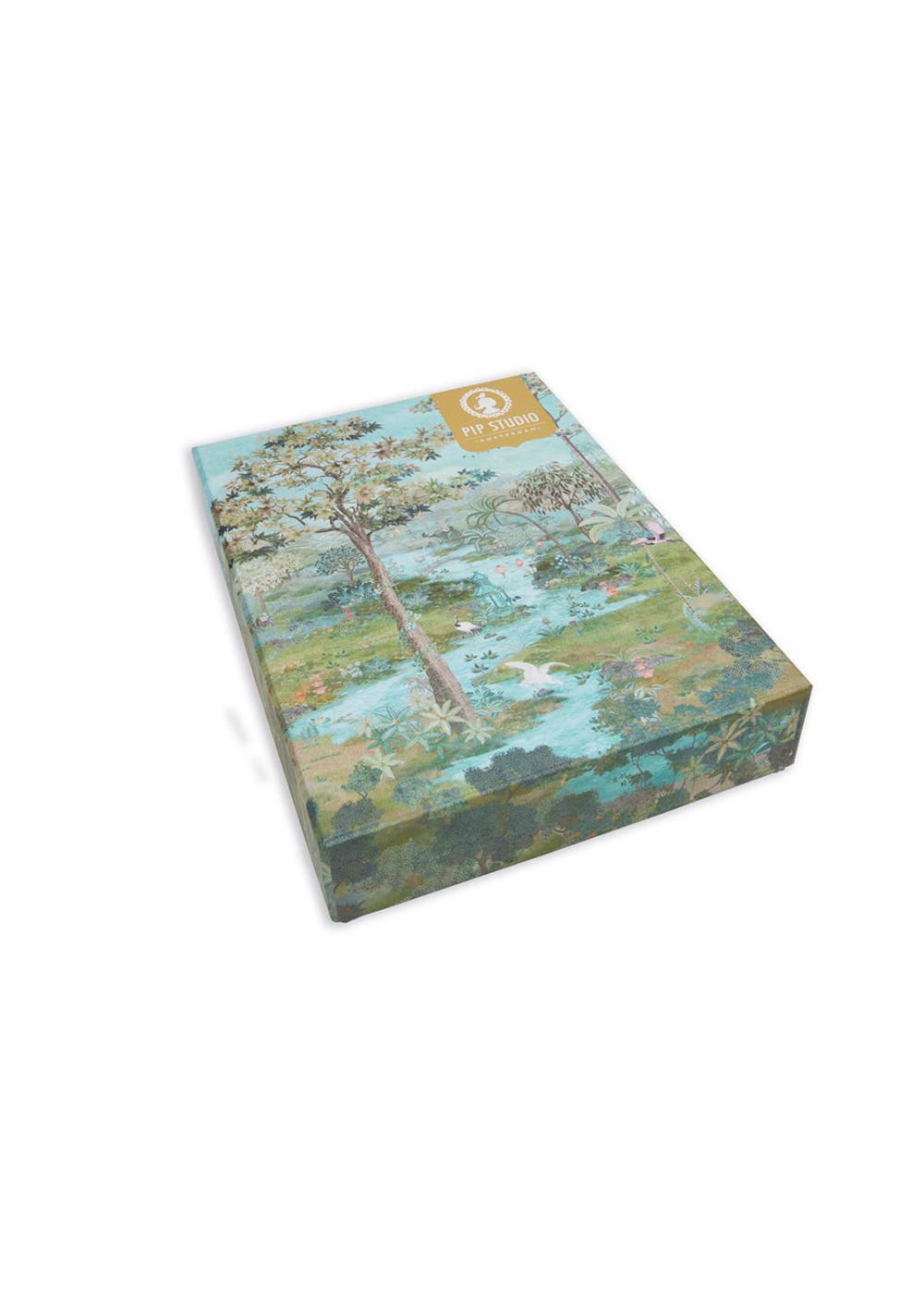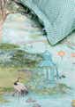 This design was inspired by the beautiful traditional Japanese landscapes. The exotic scene depicts a soft green landscape with a river meandering through it. On the water’s edge, among the palm trees and fields, you can see cranes and herons catching fish. In the background, stylized mountains emerge with pagodas in between. The perfect exotic print for dreaming the night away. The back features a pattern of pattern of stylistic arcs. It has a luxurious cover with an opulent look. The pillowcases and the quilt cover have an Oxford trim on the sides. The pillowcases have different prints on the front and back. This unique tie closure ensures that the pillowcases, just like the duvet cover, are reversible, which creates a lovely mix-and-match effect on your bed.Not only is this quilt colour guaranteed to be an eye-catcher in your bedroom, but it is also lusciously soft to the touch thanks to the 100% Percale cotton. The extra luxurious 200TC weave means that the fabric looks beautiful for longer. Thanks to the extra long tuck-in flap, this quilt cover is even easier to put on your bed. Simply tuck it in at the bottom of your mattress. Pip for the planet: At Pip Studio, we are concerned about more than just creating new collections. Pip Studio has developed luxurious and sustainable packaging especially for the extra-opulent designs Flirting Birds, Majorelle Carpet, Pip Paradise, and Japonica. The inside of this sturdy box is also in true Pip style. Use the beautiful box to store all your pretty things.