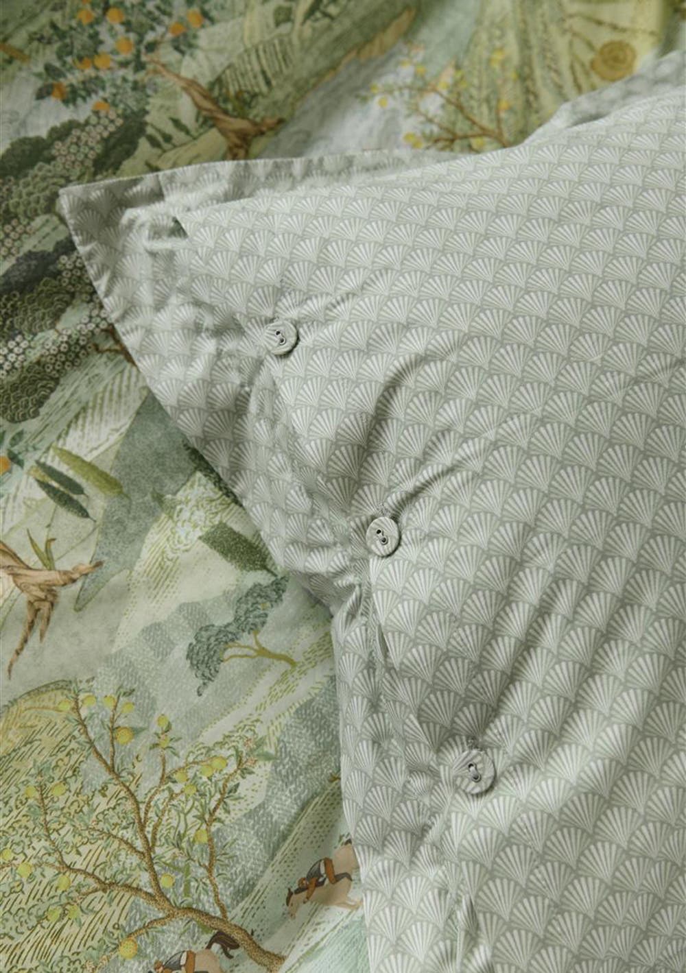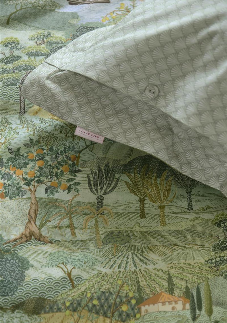 The Toscana quilt cover set will take you on a journey to Italy without leaving your home. The cypress trees and subtle references to Tuscan culture make you feel as if you’re in the middle of the Italian countryside. The underside features a pattern of small shells. The quilt cover and the pillowcases have a stitched Oxford border on the sides, adding to the luxurious look. The pillowcases have an upholstered button closure and, just like the quilt cover, feature an attractive design on both sides. Perfect for creating a quirky mix-and-match effect on your bed. The quilt cover is not only an eye-catcher in your bedroom, the use of 100% cotton percale makes the cover wonderfully soft and the 200TC weave density ensures that the fabric remains beautiful for a long time.