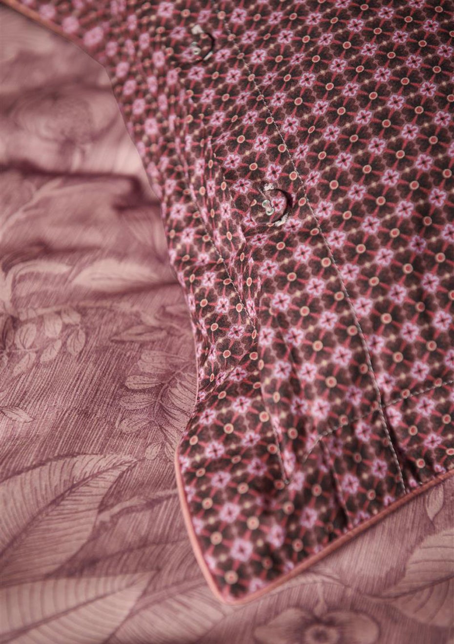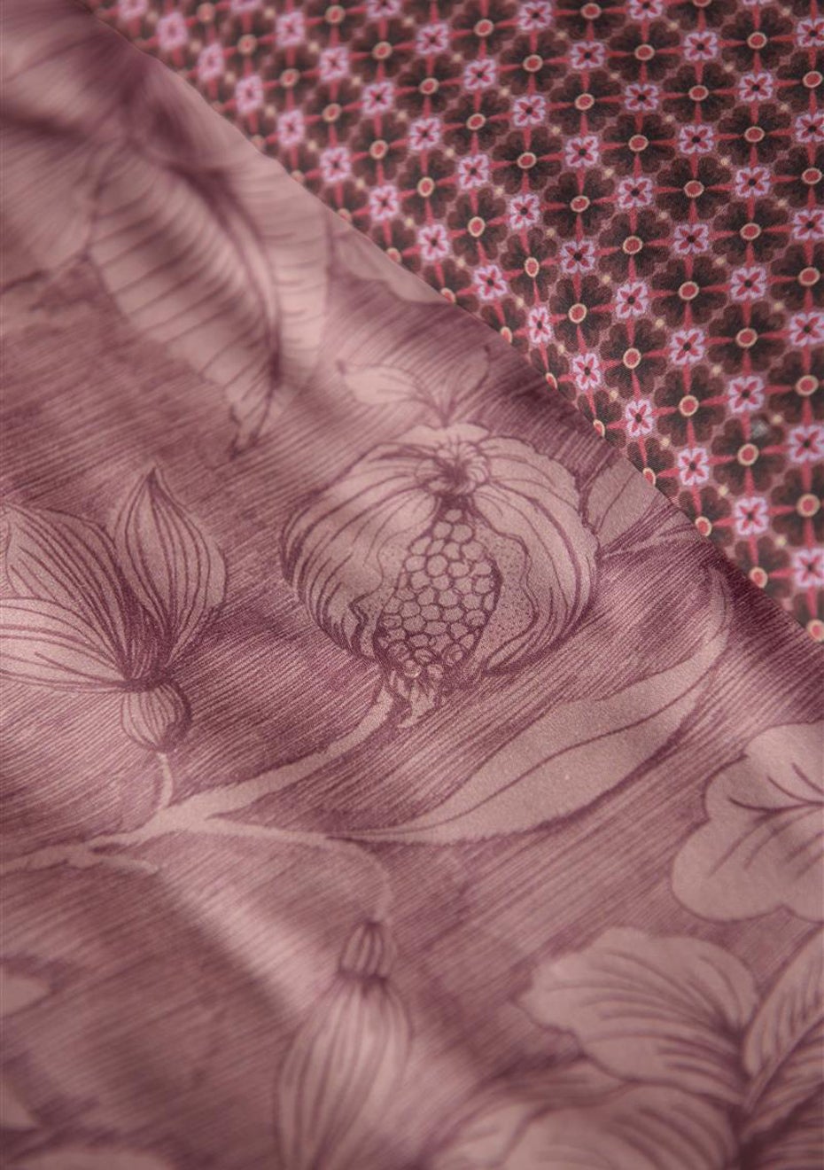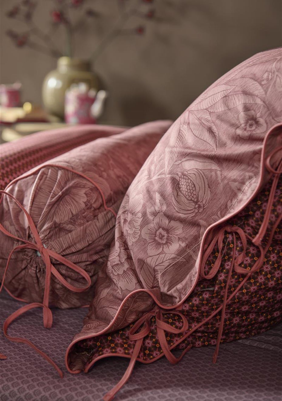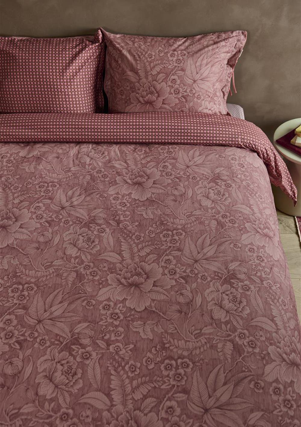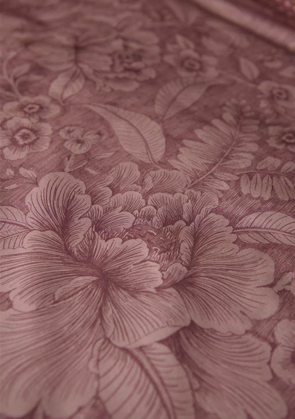The Casa dei Fiori quilt cover features large fanciful flowers and foliage drawn in fine lines. The tonal use of colour gives the quilt cover a serene look&feel. The pillowcases and quilt cover have a stitched Oxford border on the sides and are finished with round cord piping. The pillowcases also have a unique tie closure. All in all, this gives the quilt cover and pillowcases an extra lavish and luxurious look&feel. The back of the quilt cover and pillowcases have a print of tiny flowers, making it ideal for reversible use. Perfect for creating a quirky mix&match effect on your bed. The quilt cover is packaged in a beautiful textile bag made from the same fabric as the quilt cover. The bag is reusable and also allows you to see and feel the print of the quilt cover.