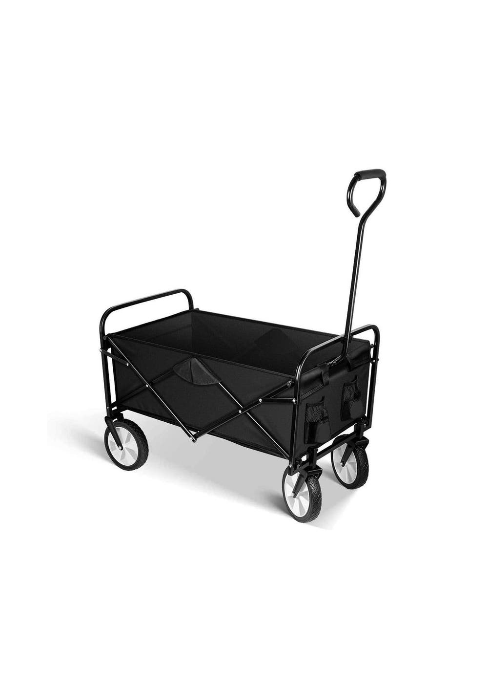 PR8636 Bryxon Folding Wagon BlackThe folding wagon makes your outdoor activities become so convenient. No matter you are going to play sport game, do gardening or go camping, the large storage space with extra bags can carry all you need at one time. Made with a sturdy steel frame, durable polyester fabric and multi-directional wheels, it provides you with a long-lasting and tough solution when it comes to transporting items from one place to the next. Not least, folding down in just seconds, it can easily be stored in the back of the car or packed away in the garage when not in use. Let’s enjoy your holiday with our folding wagon.FeaturesMulti-purpose folding wagonFoldable design for easy storagePortable carry bagExtra side pocketsSturdy steel frameDurable 600D polyester fabricMulti-directional wheelsEasy assemblySpecificationMaterial: steel and polyester FabricOverall dimensions: 102 x 52 x 120cm (approximate)Storage dimension: 80 x 45 x 28cm (approximate)Weight capacity up to 80kgColour: black