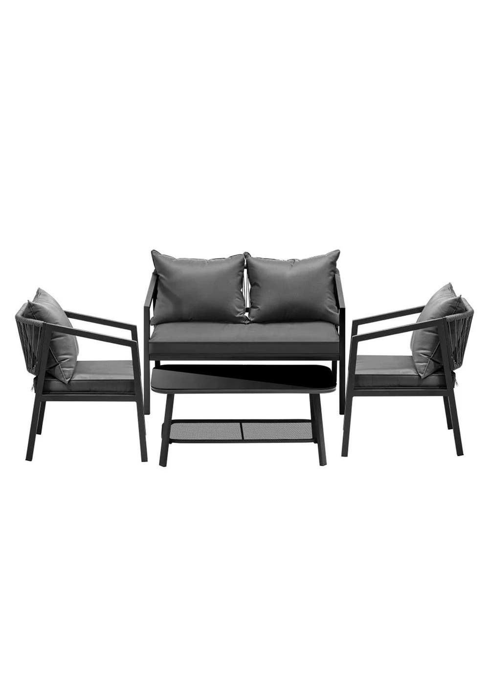 PR71805 - Messina Conversation SetIntroducing the epitome of relaxation and style with the Messina Conversation Set for your outdoor retreat! Unwind, soak up the sun, and revel in pure luxury with our exquisitely designed and meticulously crafted set, combining comfort, durability, and aesthetic appeal like never before.FeaturesTempered black glassExtra shelf space under tabletopIndoor and outdoor usePowder-coated steel frameCushioned seat and backrestRemovable and washable cushion coverRequire easy assemblySpecifications:Frame material: Powder-coated steelTabletop material: Tempered glassCushion colour: GreyArmchair dimensions: 57 cm x 60 cm x 68cm(L x W x H)Lounge chair dimensions: 106cm x 57cm x 68cm(L x W x H)Table dimensions: 80cm x 40cm x 35cm(L x W x H)Assembly required: YesPackage ContentMessina Bistro Set x 1Assembly Instructions x 1There may be a colour discrepancy between the actual product and photos due to different lighting, angles and varying monitor or screen settings depending on the device used.