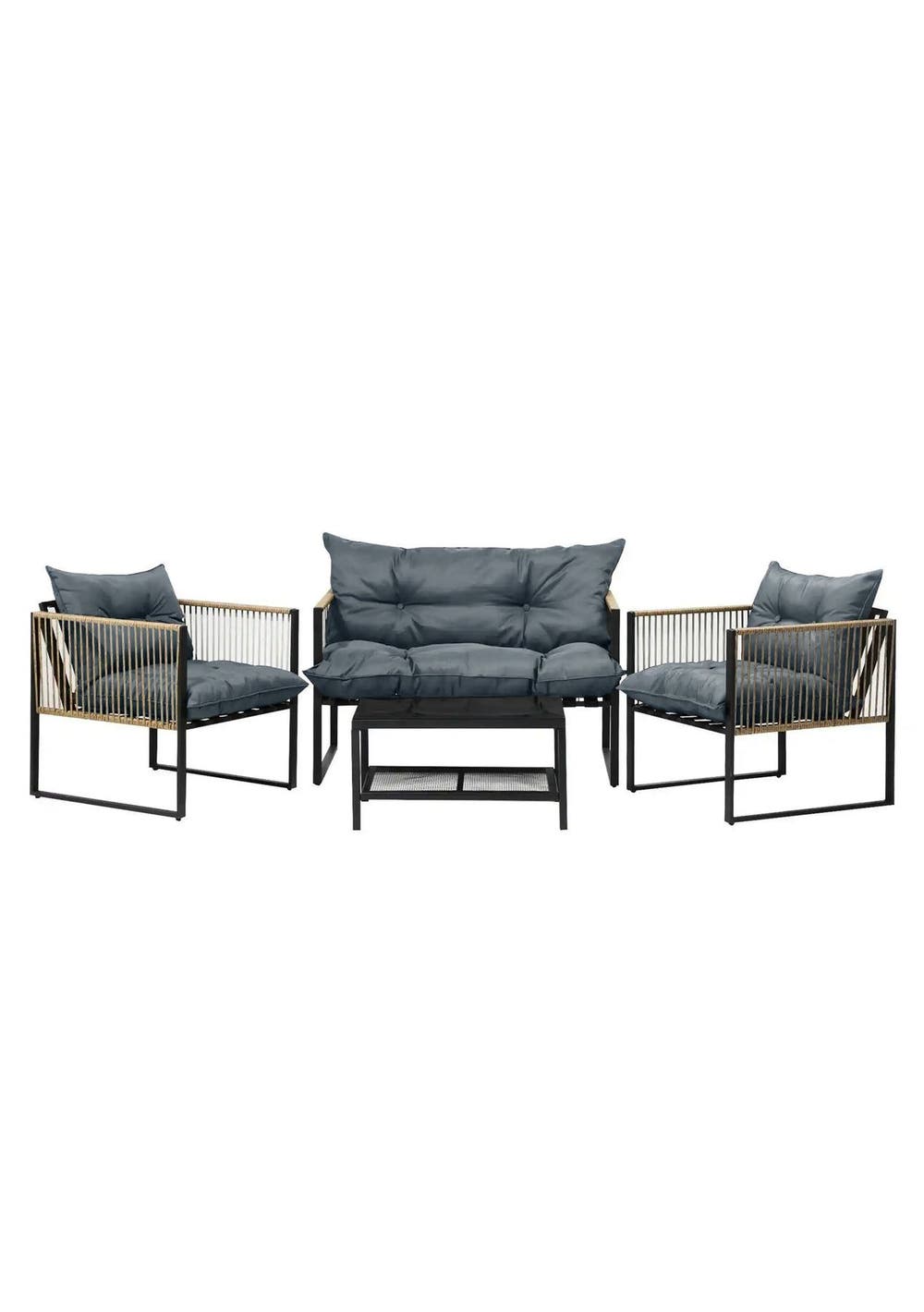 PR71801 - Taranto Conversation SetExperience the epitome of outdoor relaxation and entertainment with our Taranto Conversation Set. Immerse yourself in a world of comfort, style, and versatility as you transform your outdoor space into a haven of tranquility and enjoyment.FeaturesMatching coffee tableStorage shelf under tablePlush cushioned seats and backrestsRemovable cushion coversWeather resistanceHeavy-duty steel frameStrong and sturdy constructionSimple assembly requiredSpecifications:Chair Colour: BrownCushion Colour: GreyTable dimensions: 68 x 45 x 36cmSofa dimensions: 108 x 67 x 66 cmChair dimensions: 67 x 60 x 66 cmPackage ContentTaranto Conversation Set x1There may be a colour discrepancy between the actual product and photos due to different lighting, angles and varying monitor or screen settings depending on the device used.