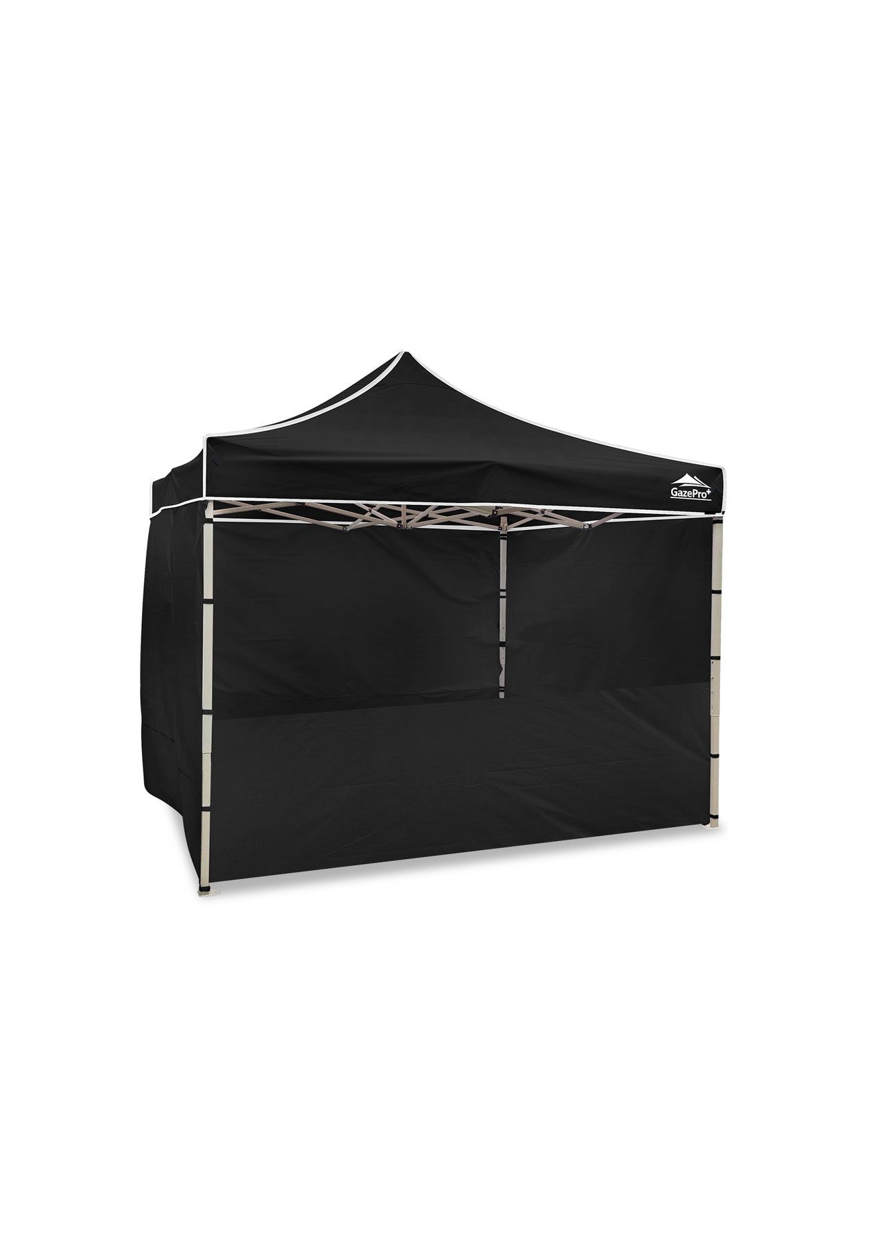 PR5104 (1) - Gazebo C 3X3M Heavy Duty Black Video: https://youtu.be/W9GHh616NPo Enjoy the outdoors more with this pop-up outdoor gazebo. This GAZEPRO+ Heavy Duty Frame 3m x 3m pop up gazebo provides a lovely ground and canopy coverage of 9 square meters. It is perfect for all your upcoming outdoor activities.GAZEPRO+ is an upgraded pop up gazebo series, is the excellent choice for home & event use. Featuring high density 1080D fabric cover with effective UV and water repellent treatments and a heavy duty frame. With 0.8mm thick, 40mm diameter powder coated steel frame equipped with large base, is very simple to set-up and extremely durable. Available in multiple colors, you will find a perfectly styled gazebo to match the theme of any event. NOTE: This heavy duty Gazebo is designed as temporary shelters Note: Gazebo can be used free standing when there is no wind but they need to be pegged onto the ground or would need sandbags or water bases to secure them. The gazebo is not designed as a permanent structure and it is not recommended to be used under extreme weather conditions or for a prolonged period of time.Recommended minimum 2 person set up. HEAVY DUTY GAZEBO FEATURES:Long lasting 280gsm PVC coated 1080D fabric coverHeat UV and water resistant roof4 adjustable height levelsEasy-glide internal joints for easy set upSafety Release cap for easy fold upGazebo Frame: 0.8mm thick, 40x40mm heavy duty frame structureLeg: 0.8mm thick, 35x35mm steel legsVelcro attachment4 corner buckleHEAVY DUTY GAZEBO SPECIFICATION:Assembled size: 3x3mColor: BlackGAZEBO SET CONTAINS:1x 3m x 3m Gazebo Frame1x 3m x 3m Gazebo roof 3x Side Wall (approx 3m x 2m)1x Half wall (approx 3m x 0.75m) Packaging Dimensions: 145x24.5x24CM