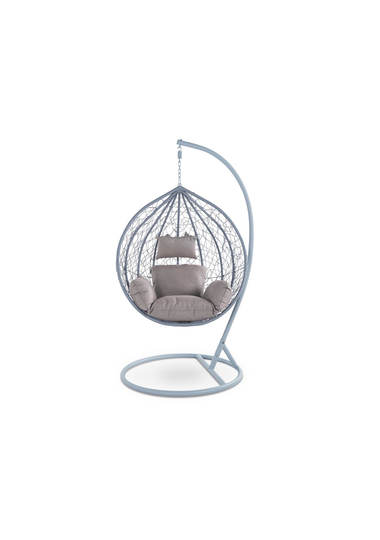 PR7266 Featuring a fun design and cool colour, The egg swing will definitely have you relaxing in style. With an original design, the swing Chair is a gravity defying lounger ,making it perfect for sun-worshipers. Stylish modern design swing chair with a comfy cushionDurable PE rattan for outdoor all weather wicker Powder coated steel rust resistantSuitable for both indoor and outdoor useMaterial: steel rattan hanging chairEgg Basket Measurement(mm): 1080W x 690D x 1190HBase Diameter:105CMOverall Height: 198mmMAIN TUBE Diameter: 68mmCushion: 220g/m2 polyester waterproof fabric Color: Grey Frame and Rattan; Grey Cushion Cover Capacity 100kgs Some assembly required Care and maintenance to extend the life of your outdoor furniture - Store in dry place or use protection covers when not in use - Keep cushions dry and away from sunlight to reduce fading /Fraying when not in use- Treat steel surfaces with rust inhibitor coating as required- Avoid exposing synthetic rattan to high temperatures over a long period of time It comes in 4 boxes:DimensionsPR7266-A: 108x119x69CM PR72646-B: 105x105x5CM PR7266-C: 198X50X5cm PR7266-D:99x101x12CM