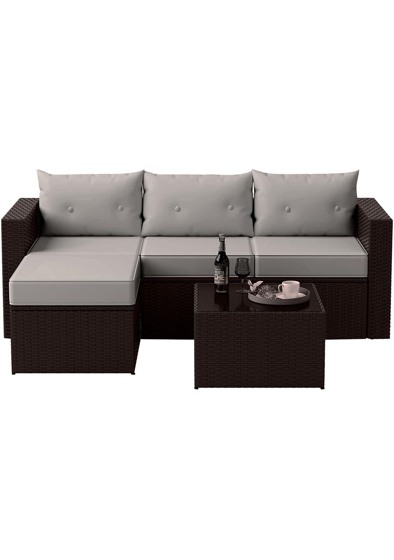 PR8985- Glendon 3PC Outdoor Sofa Set Brown+Grey Looking for an outdoor sofa? Then the Glendon 3PC Outdoor Sofa is the one that you're looking for! With its PE wicker handiwork and heavy-duty steel frame, the stylish outdoor set is made to last. Its seat cushions are filled with polyester for comfort and wrapped in easy-to-clean polyester upholstery. This would make for a great addition to your outdoor living space. Not least, The coffee table is made of tempered glass and PE wicker. Large desktop and reinforced table legs provide ample space and stability for various fruits and drinks, it perfect for enjoying wine and cakes with family. Whether it’s placed poolside or on the patio, you’re sure to love this Outdoor sofa!FeatureHeavy-duty steel frameQuality PE rattanHigh-density foam seat cushionsRemovable cushion coversEasy cleaningSimple assembly requiredSpecificationMaterial: Steel + PE rattanColour: brown rattan + grey cushionDimension: Sofa: 194x67x61.5 cmOttoman: 60x60x37 cm Care and maintenance to extend the life of your outdoor furniture - Store in a dry place or use protection covers when not in use - Keep cushions dry and away from sunlight to reduce fading /Fraying when not in use- Treat metal surfaces with rust inhibitor coating as required- Avoid exposing synthetic rattan to high temperatures over a long period of time