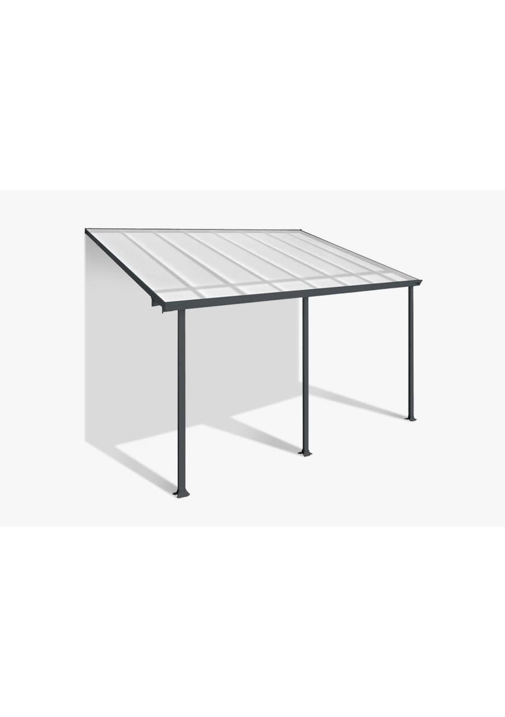 PR6195Create additional outdoor space easily with this 16x8ft aluminium patio cover. Made from heavy duty materials with power coated aluminium frame, polycarbonate roof panels and sturdy supporting legs. Protect your valuables from the fickle weather and harmful UV rays. This patio cover is an aesthetic, high performance structure with flexible positioning poles enabling you to set your required height at the wall connection, the distance from the house and between the poles at the front. It provides your family with an elegant, sturdy for years to come.FEATURESPowder coated aluminium framePower coated steel connectorsAnti-UV polycarbonate roof panelsSturdy legs and ground anchorsAdjustable poles for ideal positioningGenerous spaceBuilt to lastRequires a solid level surface and solid wall supportColour: Dark greyOverall Dimension: 495x254x206/258cm
