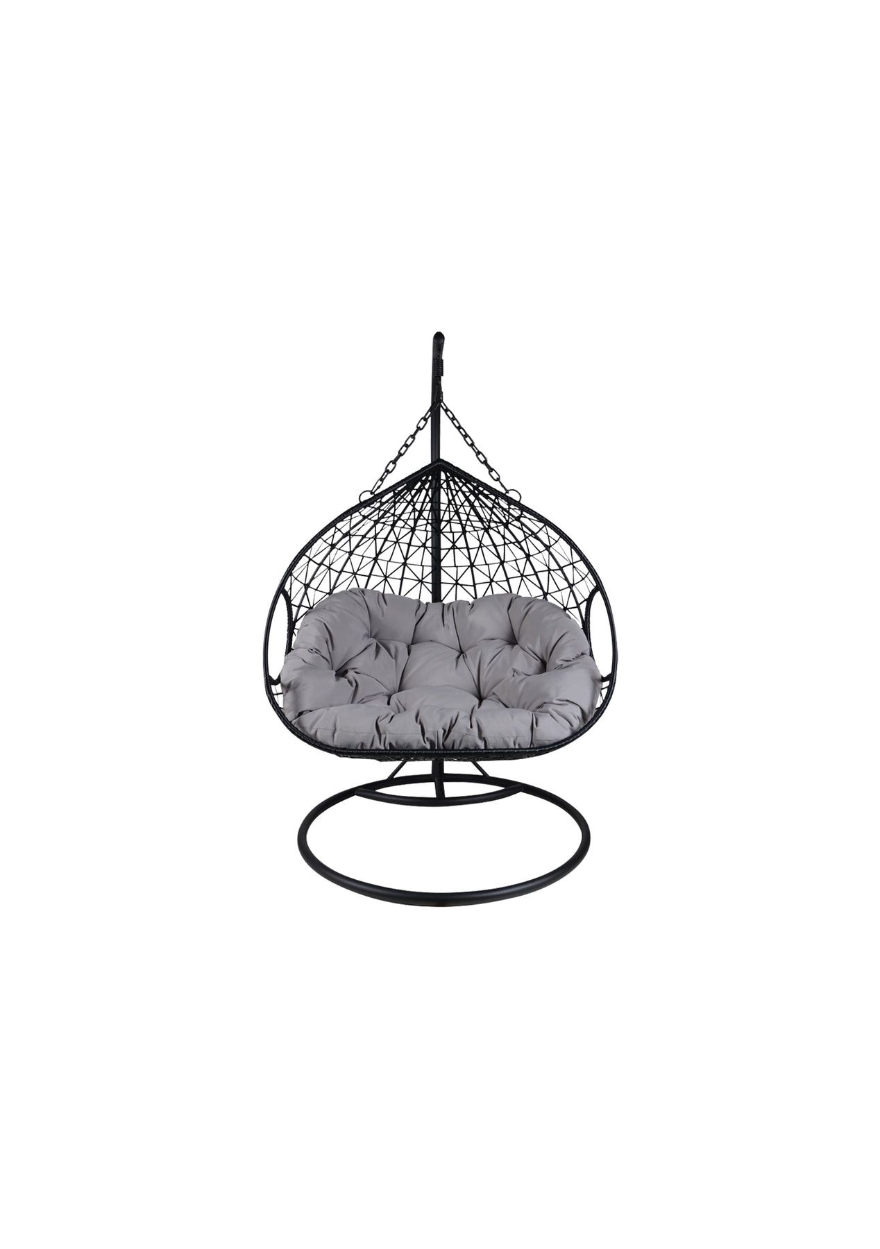 PR65893 Bottorff Swing Chair Black+Grey Inspired by nature's timeless elegance, our chair boasts a unique eggshell-shaped design that stands out as a stunning focal point in any outdoor setting. Featuring a sturdy and black powder-coated frame with a four-legged base, this egg chair is built to last. The arc backrest is ergonomically designed with soft and comfortable all-weather padded cushions which can be long-term use, and enhance overall comfort. The simple and premium tone is perfect for decorating your patio, porch, deck, sunroom, and other outdoor spaces.FeaturesMaterial: Steel + PE rattanContemporary designEgg shade constructionSteel frameSolid metal basePE rattanThick padded cushionsAssemble requiredSpecificationsMaterial: Steel + PE rattanChair dimensions: 117x130x72 cmBase dimension: 119x204cmColour: Black+GreyWeight capacity: 200kg