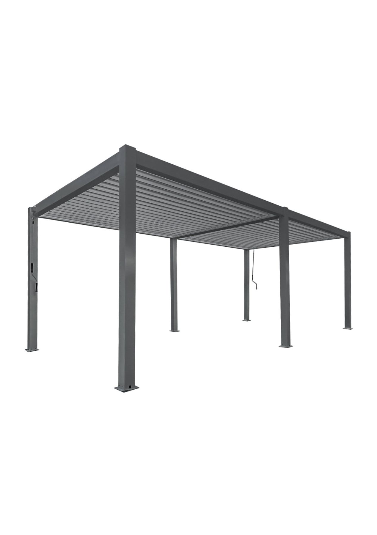 PR8729 - Louvre Roof Pergola 3x6M Grey This aluminum louver pergola is a great functional addition to most of the outdoor spaces. Thanks to the Pergola provides a multi-season entertaining oasis. The opening roof allows the residents to choose between more or less sun exposure. Another reason pergola is a great asset that it furthers the amount of time you can enjoy your outdoor living space as the weather changes, no matter rain or shine, cold or warm, day or night. The design of the free-standing pergola appreciates its architectural style and smart integrated technology. Its drainage system provides excellent rain protection, as rainwater is funneled away down inbuilt downpipes in the leg posts. Featuring double-layer louvers are made tougher and have better heat insulation. Low maintenance is another great benefit of building pergola aluminum. With its clean and sophisticated appearance, this pergola goes with any modern architecture and designs easily. It is worth investing this great asset in your backyard. Surely it will last for years. IMPORTANT NOTES:1. We strongly recommend getting professional advice before installation. 2. This free-stand pergola should be installed on a solid foundation and anchored to the ground. The substrate surface needs to be flat and leveled. 3. Please do not attempt to make alterations to these pergolas. Your warranty coverage will be voided by any adjustments and misused4. Please keep the roof open in the extreme weather to avoid the risk of damageFeatures:* Reliable sun and weather protection* Double layer louvers make stronger and better insulation* Water drainage through gutters and posts* Powder coating anti-rusted Aluminum structure* Excellent value* Waterproof pergola once the louvers are closed* Optional adding ScreenSpecification* Product Size: 295(L)x581(W)x230(H) cm* Color: Grey* Material: Powder-coated Aluminum* Louvre operated with manual hand crank* Louvre tilt range: 90 degree* Post: 110x110x1.6mm* Beam: 136x95x1.6mm* Louvre: 168x29.6x1.4mm Assembling tutorialÔºö