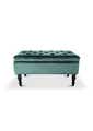 PR9574 Lettice Storage Ottoman Bench Velvet Green With an elegantly tufted seat and finished in elegant velvet, our ottoman is simply luxurious to rest on and adds a plush touch to any home. But more than that, it also provides neat storage space for your home essentials. Blankets, throws, pillows, magazines, and even toys can be stowed away in a discreet, easy-to-access manner. Made of quality material, the ottoman is strong and sturdy and stands up to durable use. The lift-up top enables easy access while its robust metal hinges ensure that it will stay open and not falter easily. Whether you are using the ottoman as extra lounge seating, bedroom décor, or your favorite footrest, our multi-functional and versatile ottoman matches form with function perfectly and elegantly. FeaturesCan be used as seating, footstool, and storageGenerous storage spaceSturdy wooden constructionHigh-density foamLift-up lidRobust metal hingesWooden legsSpecificationsFrame material: PolywoodSeat material: velvetOverall dimension: 78 x 37 x 40 cmColor: GreenSimple assemble required.
