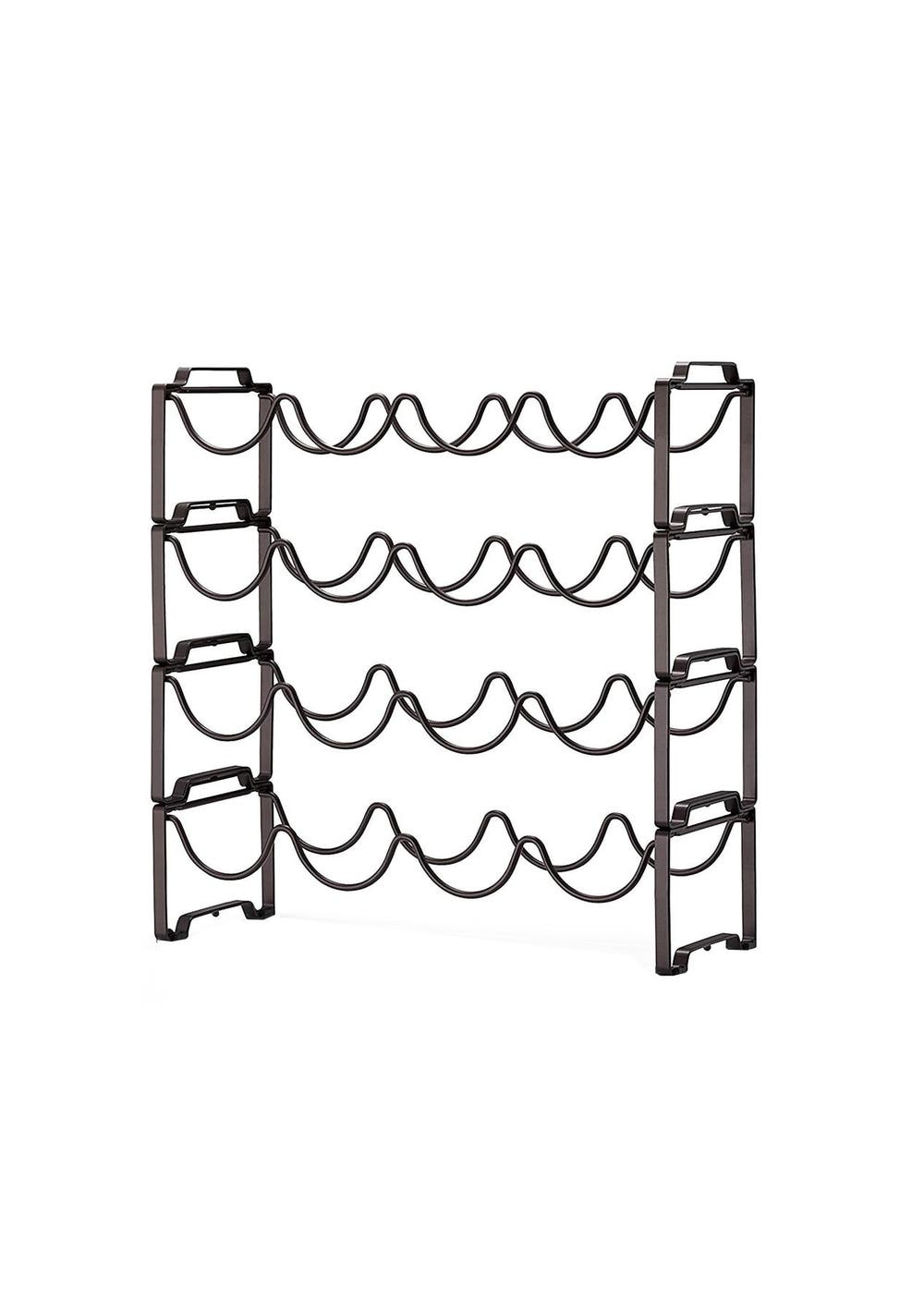 PR9243 - Metal wine rack 16 bottlesThe elegant wine rack conveniently showcases and stores up to 16 wine bottles. Made from a sustainably galvanized iron structure, it will make sure your wines are in good hands. Designed to comfortably hold up to 16 bottles in a tidy structure, this storage system contains everything you need to store your wine in style. FeaturesSpace saving & organizedHeavy-duty galvanized ironComplement any kitchen, cellar, restaurant, or barModern appearanceEasy to installSpecificationCapacity: 16 wine bottlesOverall dimension:44x17.5x37.5cmColor: Black Package dimensions:L46cmxW20cmxH4cm