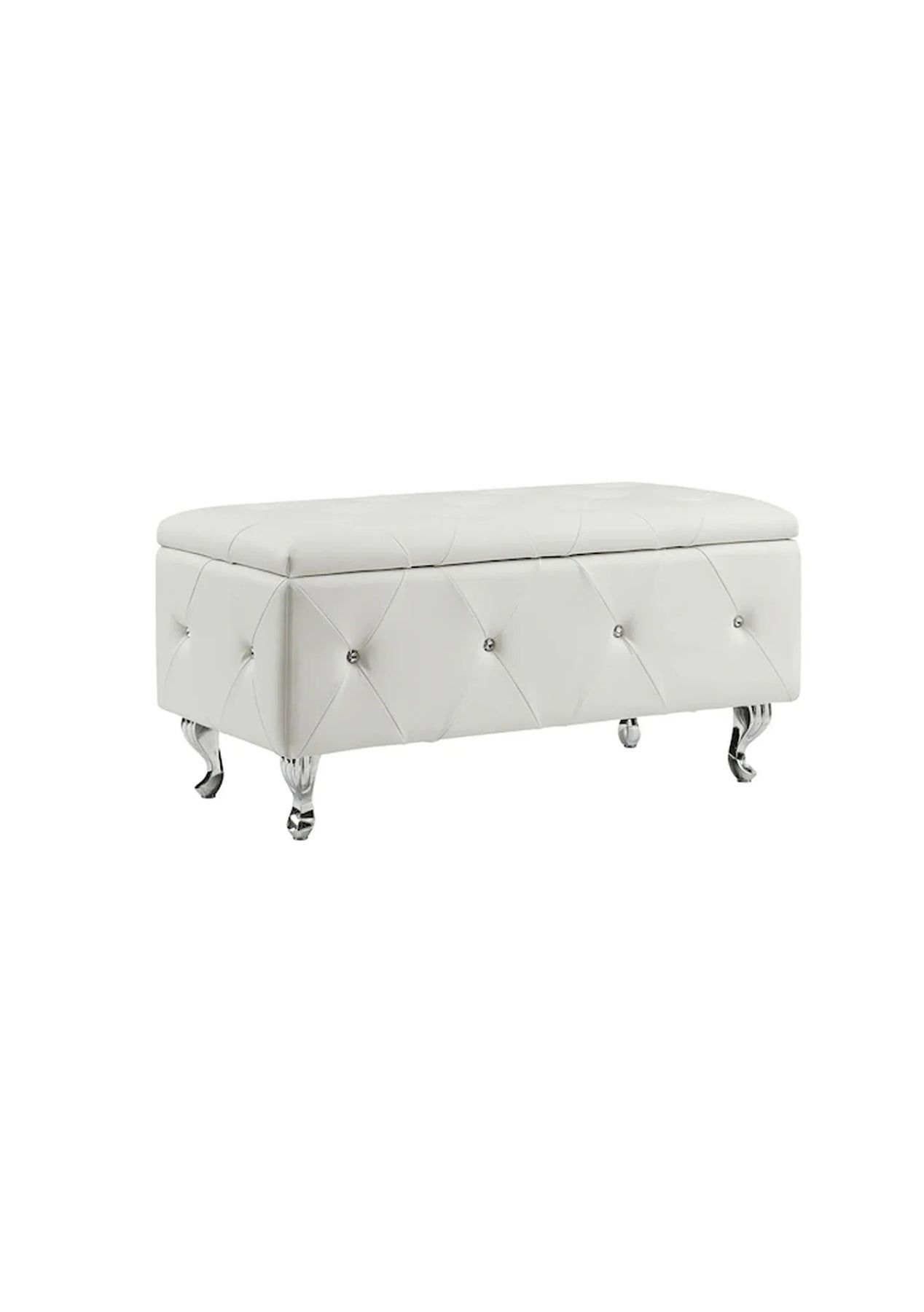 PR8451-Lizy Storage Ottoman Bench PU WhiteLooking for a storage solution with more taste? Look no further than our premium Lizy Storage Ottoman Bench. With an elegantly tufted seat and finished in skin-soft material, our ottoman is simply luxurious to rest on and adds a plush touch to any home. But more than that, it also provides neat storage space for your home essentials. Blankets, throws, pillows, magazines, and even toys can be stowed away in a discreet, easy-to-access manner. Made of quality material, the ottoman is strong and sturdy and stands up to durable use. Whether you are using the ottoman as extra lounge seating, bedroom décor, or your favourite footrest, our multi-functional and versatile ottoman matches form with function perfectly and elegantly.FeaturesCan be used as seating, footstool, and storageSleek foam edgesGenerous storage spaceLift-up lidSturdy wood constructionRobust metal hingesMetal legsEasy assembleSpecificationsMaterial: PUSeat weight capacity: 125kgColour: WhiteDimension: 97x45x46 cm Packaging Dimensions: 94x46x32.5CM