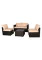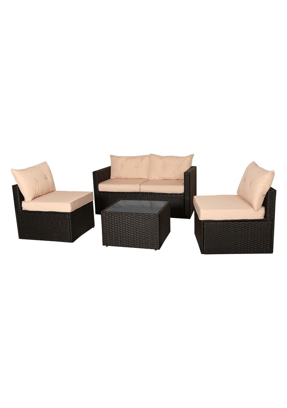PR8952-4PC Modular Garden Sofa Set Black+BeigeCrafted with PE wicker handiwork and a heavy-duty steel frame for exceptional durability and cushions with a high-density sponge, the 4PC Modular Garden Sofa Set gives you a comfortable sitting feel. The removable cushion cover is easy for cleaning. Great for creating your own personal oasis outdoors, this set is comfortable and easy to maintain. Able to fit a variety of living space styles and settings, this sofa and table set can be placed in an endless number of configurations. FeatureModular designHeavy-duty steel frameHigh-density foam seat cushionsRemovable cushion coversEasy cleaningSimple assembly requiredSpecification1 x 2-seater sofa2 x armless chairs1 x coffee table with tempered glassRattan Material: PE Rattan color: blackCushion color: beigeDimensions: Chair: 56x66x61 cmSofa: 135x66x61 cmTable: 60.5x60.5x37.5 cmCushion thickness: 8.5cm Packaging Dimensions113x 35x 65CM