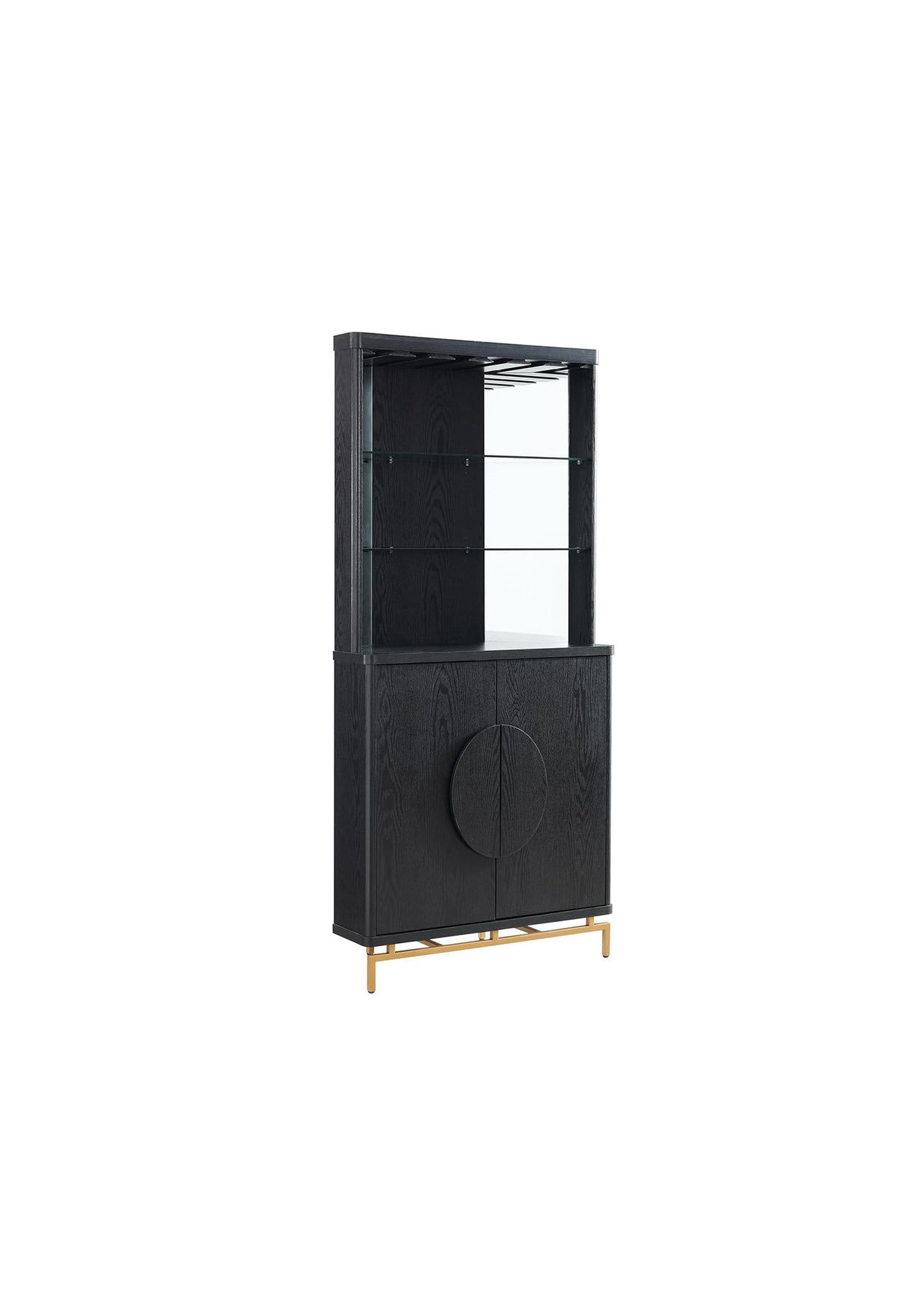 PR71850 Wine Cabinet DC77 Black Host any social occasion with this stylish bar cabinet. The half-moon handles give this cabinet a futuristic look, while the solid metal base adds stability. Open the cabinet doors to find two beautifully designed wine racks. There is also plenty of shelf space to store your favorite beverages, vases, or glassware; and hanging space for wine glasses above. This bar will look great in either your lounge or dining room.Cabinet Doors with Half-Moon Handles: These half-moon handles add a stylish futuristic look to this cabinetHang your favorite wine glasses aboveStylish Wine Rack: Open the cabinet doors to find a stylish wine rack for your best winesStorage Space: Store your favorite beverage collection in the cabinet below Ideally suited to any modern lounge or dining roomSolid Metal Base: The metal base offers added stabilityMaterials: MDFCare Instructions: Wipe cleanDimensions: 80x39.8x172.5cmAssembly requiredColor: BlackPackage Content1 x Wine Cabinet DC77 Black1 x Assembly Manual*Only Wine Cabinet DC77 Black, WINE & GLASSES are not include.