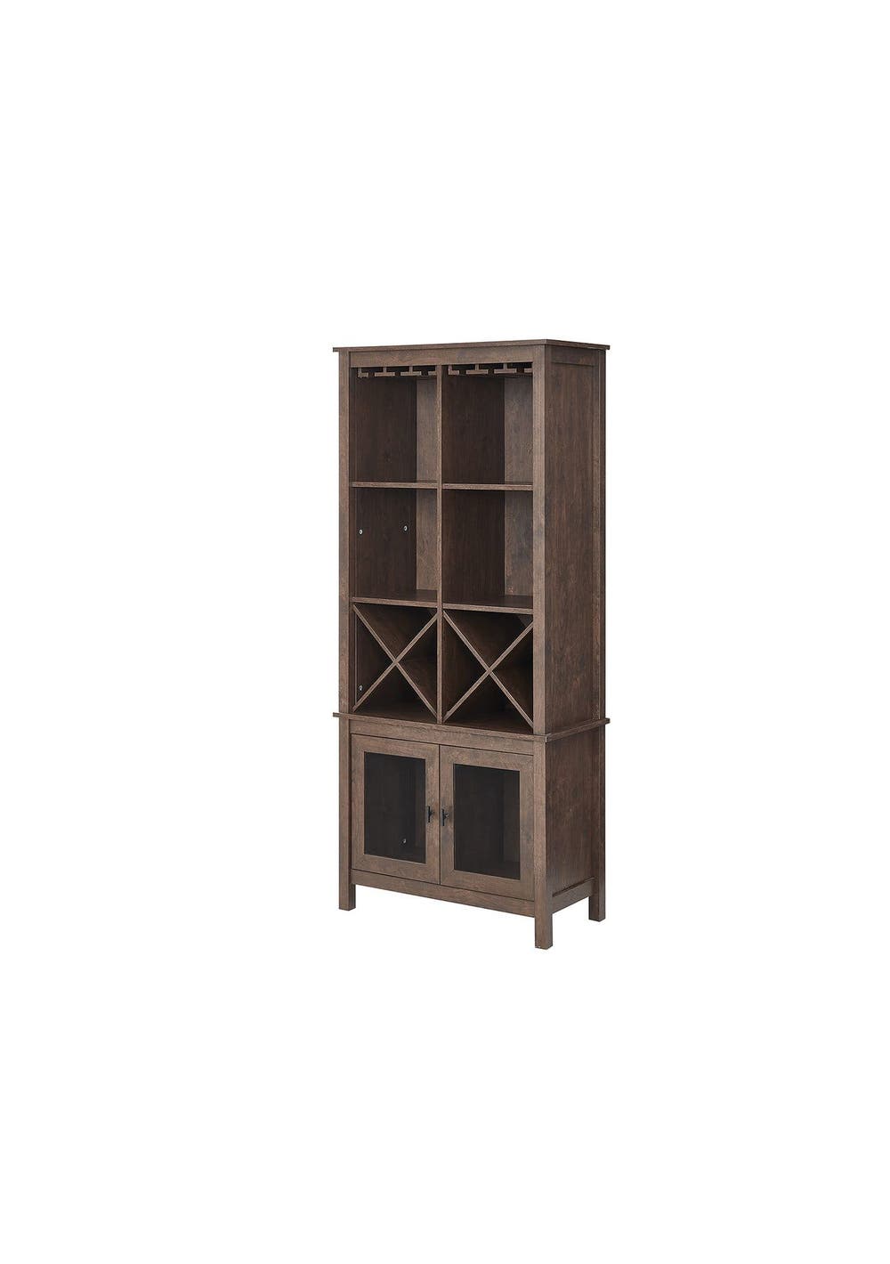 PR71903 Wine Cabinet Jz38 Mahogany This accent bar cabinet adds rustic-style convenient storage to your living room or dining room. It’s made of solid and engineered wood in a coastal finish and features a rectangular silhouette. One half features six open shelves that are ideal for wine storage or for your favorite bottles of spirits, while a two-door cabinet with a metal grate decoration opens up to storage for your favorite glasses and tumblers. We love that this piece's versatile design means it can double as a bookshelf. FeaturesFor extra storage spaceCabinet Type: CabinetMaterial: MDFColor: MahoganyAssembled Product Dimensions (L x W x H): 81.2 x 39.3 x 182.8cmPackage Content1 x Wine Cabinet Jz38 Mahogany1 x Assembly Manual