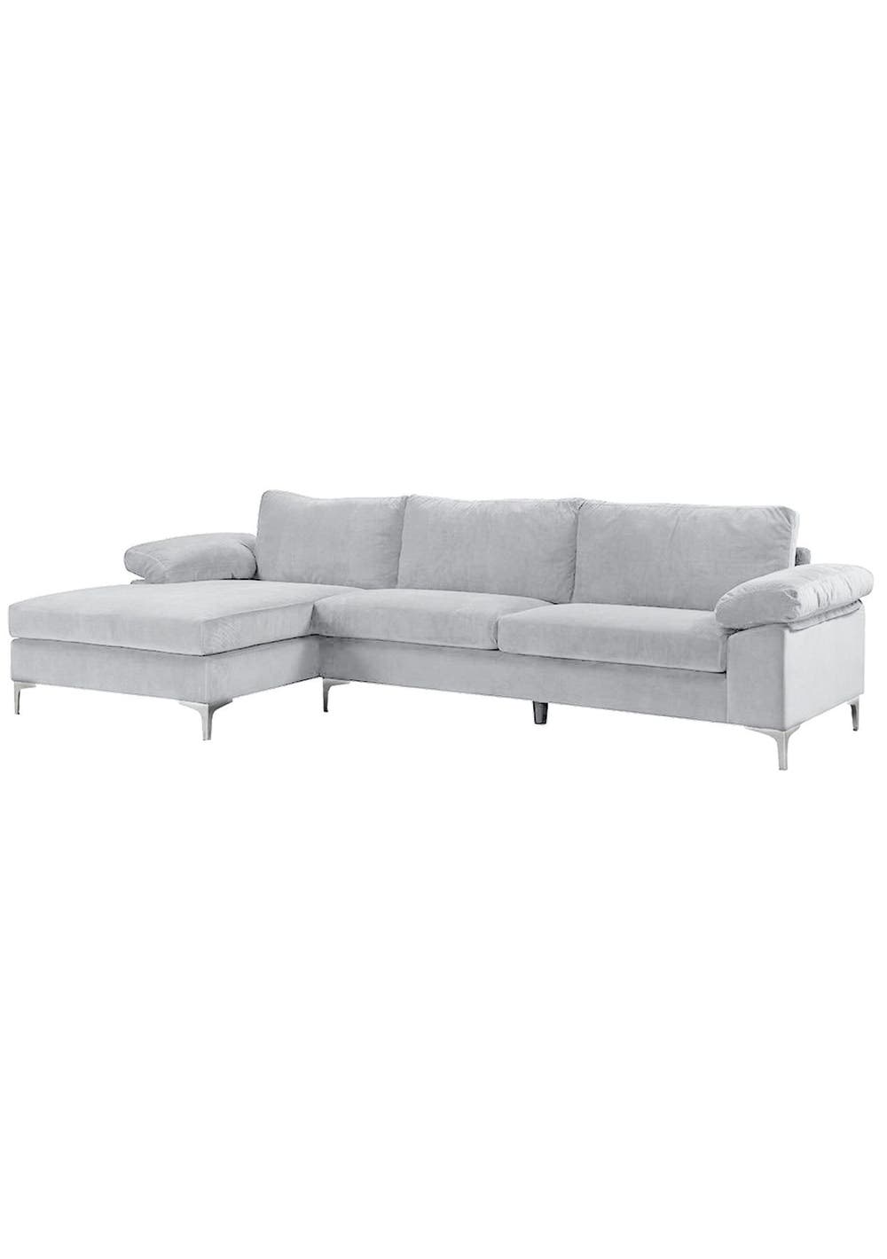 New Ronni Sectional Sofa with Left Chaise Velvet Grey