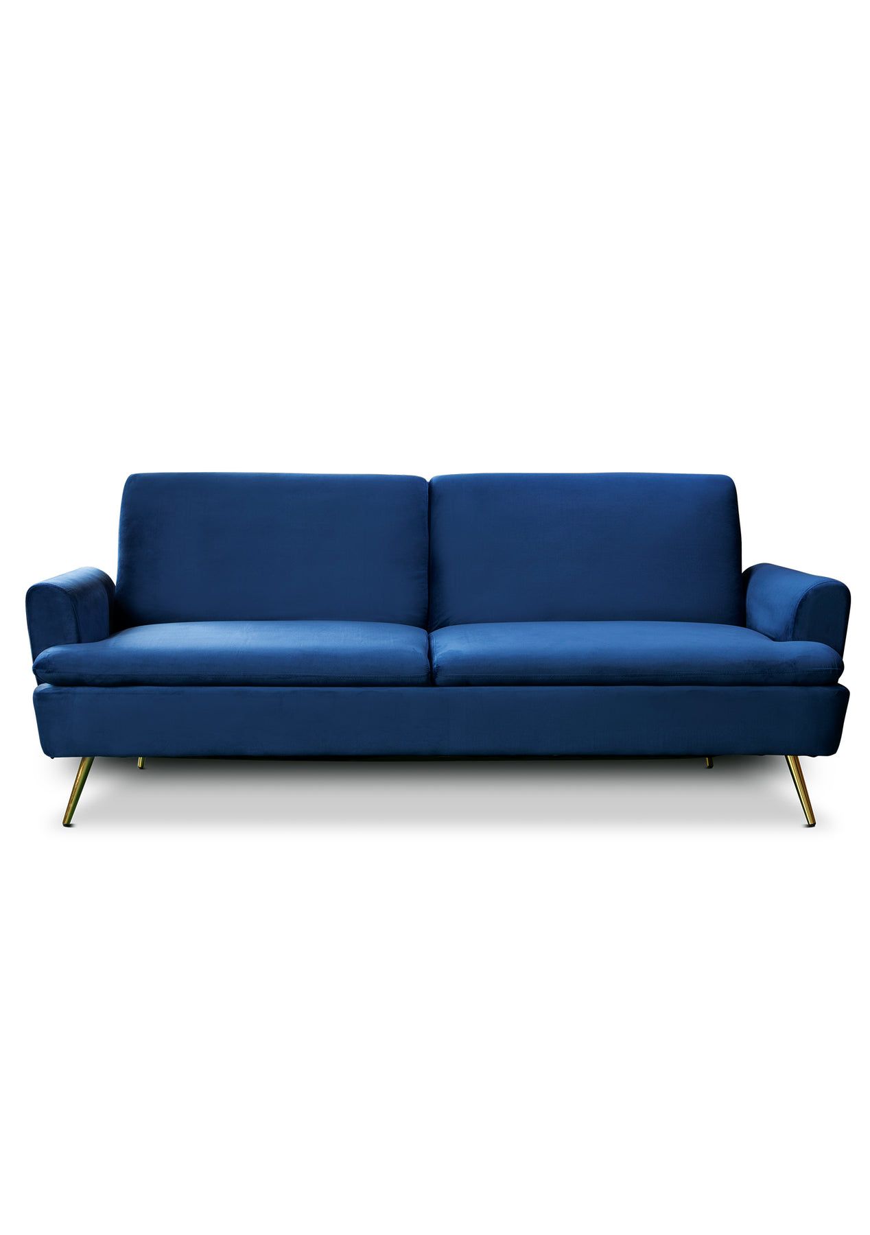 PR8688 T Gyllene Velvet Sofa Bed Navy Comfortable and not easily deformed. Our velvet sofa is covered with carefully selected velvet. It is soft, not easy to wrinkle, and comfortable to sit on. In addition, the seat is thickened with a high-density sponge, which is more durable and not easily deformed. Our futon sofa can be easily converted into a bed. This open-top design can make full use of your space without taking up too much space. The combination of smooth lines and rose gold tapered metal legs make the velvet sofa more elegant and stylish. Its shaped lines are simple and vintage, adding more features to your living room.Easy to convert into a bedModern Elegancemade of solid wood frame and metal legsimproves stability and durabilityHigh-density foam cushion that creates a comfortable seatSofa dimensions: L207 x D85 x H85 cmChaise:L207 x D110 x H45 cmcolor: Navy Height from Floor to Sofa Seat: 43cm Package Dimension: 206cm x 113cm x 27cmGyllene Velvet Sofa Bed Navy x 1 Please click here for Assembly Instructions.