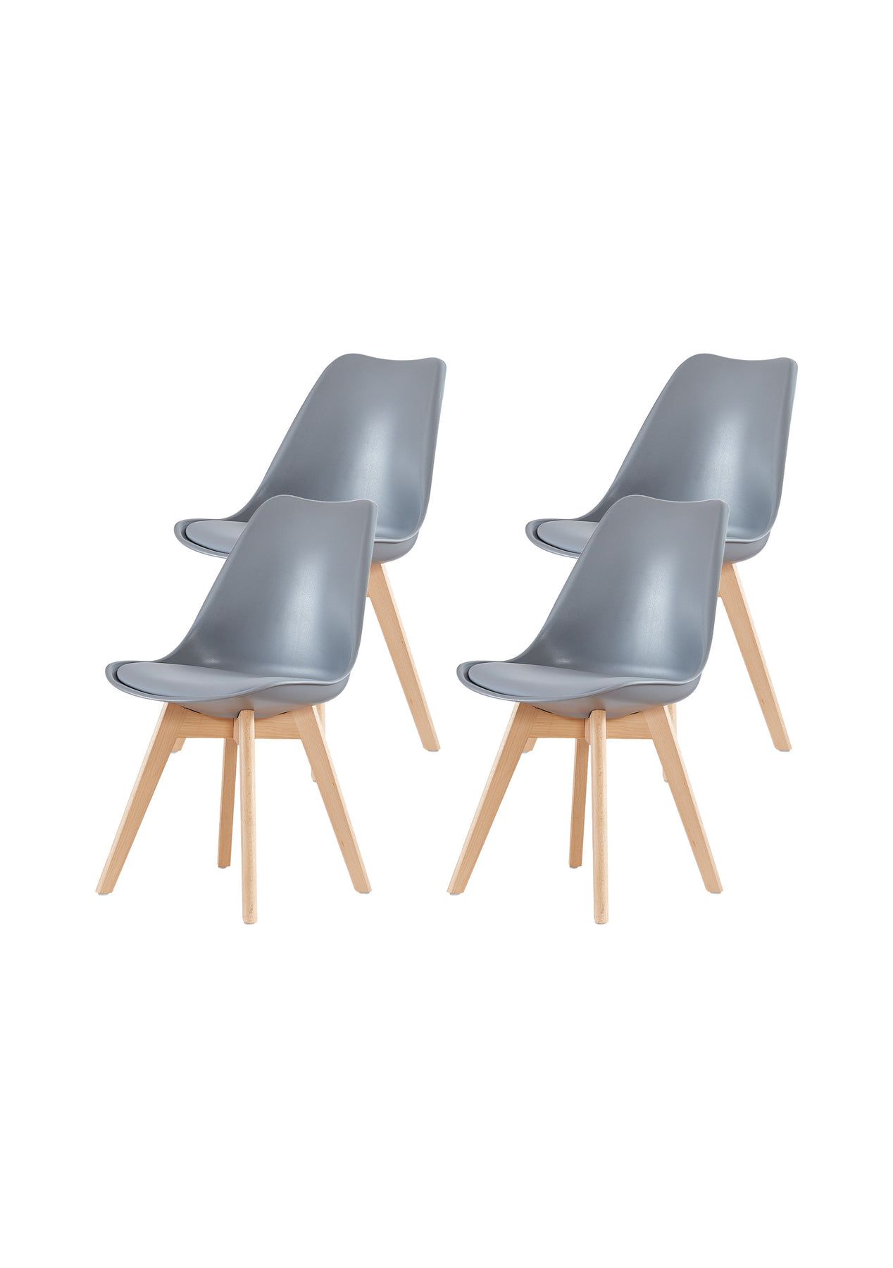 PR666460 Inspired by Charles in the mid century, this set of Dining Side Chair serves the purpose of providing seating comfort with a modern and stylish design. The simple structure is built with PU leather seating supported by a set of durable steel fixings and four beech wooden legs. Incorporating a modern style with simplicity in design structure, this set of dining chairs will adapt beautifully to any decor.Features* Affordable & High Calibre* Matt finish PP plastic seat* Thick padded seat* Beech wooden legs* Plastic protectors to avoid scratches to the floor* Ideal for home, office and cafes* Simple assembly* Seat Material- PU Leather* Overall dimensions: 48 x 43 x 81cm* Colour- Grey* Other dimensions: see photos Weight Capacity; 120kgPackage Contents* 4x Dining Chair* 1 x Assembly Manual Please click here for assembly instructions. Packaging Dimensions: 67x73x55CM