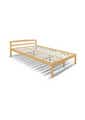 PR9114-Wayford Wooden Bed King Single Natural Give your bedroom a stately makeover with this sleek and modern platform bed. Featuring a practical and simple design, this Wayford single wooden bed frame will add a sense of simplicity in your lovely home with your favourite cushions on it. Stable and of sturdy construction, it is built with quality wood with smooth finished edges. The natural finish presents a clean, elegant look making this bed frame an excellent addition to any bedroom. FeaturesWooden bed frameStable & sturdy constructionMiddle support bar and legsSmooth finish edgesSuperior workmanship and joineryHeavy duty wooden slats to support mattressFits NZ standard KING SINGLE size mattressSpecificationColour: naturalMaterial: Pinewood and PlywoodOverall dimension: 209x113x62cm Simple assembly required Weight Capacity: 200KGS It comes in 2 boxes.Packaging Dimensions: BoxA: 207x24x8.5CMBoxB: 110x25.5x7CM