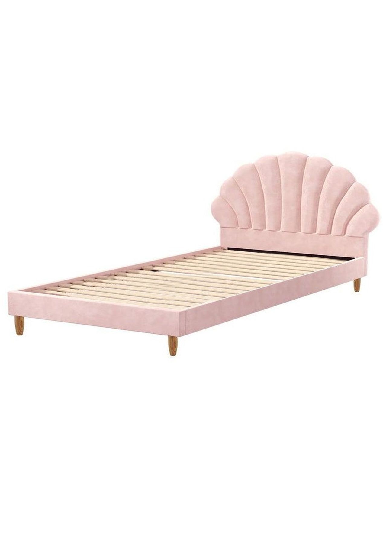 PR65700 Ariel Princess Bed Double Featuring a unique scallop-shaped bedhead, the Ariel Princess Bed Frame radiates with style and adds a luxurious presence to any bedroom dcor. Even more so is the luscious factor with its pink velvet upholstery that covers the bed frame from head to end. Soft to the touch that lends a sensuous and intimate aura to accompany your calm and restful sleep. But there’s more to the bedframe than just an alluring appearance. The finishing is meticulous with exacting workmanship all around. Inside, the solid wood reinforced slats provide end-to-end support for the mattress while the sturdy rubber wood legs ensure that the bed frame stands up to durable use time and again. Better still, setting up the bed frame is hassle-free with Velcro-enabled slats that simply fasten to the bed frame for better grip and stability. FeaturesPremium Velvet upholsteryScallop-shape bedheadSolid wood reinforced slatsVelcro-enabled slatsSturdy rubber wood legsEasy maintenance and cleaningEasy assembly*Note: Actual colour may vary due to monitor colour calibrations.Bed frame material: Velvet fabricSlats material: PlywoodLeg material: Rubber woodOverall dimensions:Double: 201cm x 142.5cm x 102cmColour: PinkWeight Capacity: 150KGAssembly required: YesNumber of packages: 2Ariel Princess Bed Double x1Assembly Instructions x1