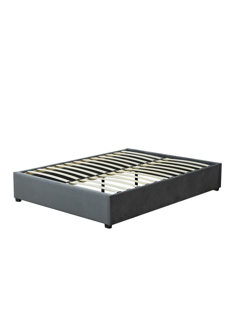 PR10066- Keetsa Bed Frame Queen Velvet Dark GreyThe Keetsa Bed is not truly a stylish addition to any bedroom but guarantees to give you pleasant dreams with every sleep. The frame is built with reinforced wooden construction while the wooden arched slat frame helps to distribute weight evenly across the framework. Heavy-duty connectors are used throughout the frame to increase its durability and reliability with long-term robust use. For an elegant finish, the bed frame is padded with high-density foam and upholstered with premium velvet fabric. If so desired, the bed frame can be matched with our complementary bed head for a complete look. Note: Mattress is not included; Mattress completely covers above the whole bed frame.FeaturesUpholstered with premium velvet fabricPadded with high-density foamReinforced wooden constructionSmooth finish edgesHeavy-duty metal connectorsSturdy legs supportSpecificationsMaterial: Faux velvet fabric + woodSlats: PlywoodFits a standard Queen-sized mattressOverall dimensions: 205cm x 154cm x 35cmWeight capacity: 300kgColour: Dark GreyAssembly required. It comes in 2 boxesPackaging Dimensions: BoxA: 159x46.5x14CMBoxb: 198x34x15CM