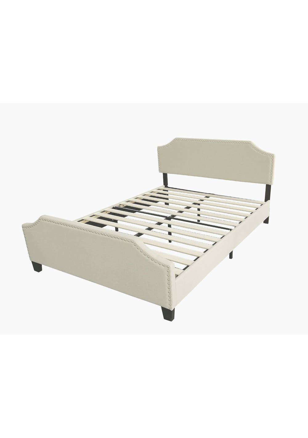 PR65310 Eldora Linen Bed Frame Queen BeigeThe Eldora Linen Bed Frame features metal frame and wooden slats that provide strong and sturdy support for your memory foam or spring mattress, it is the perfect solution to get a foundation that will fit for in limited spaces. It features a sturdy wood slats construction with metal side rails and a center support leg for more stability and durability. This platform bed with headboard provides you a stylish and strong support for your mattress, with high and thick headboard will provides you an excellent comfortable feeling while leaning on. Its classic appearance and simple, timeless design add a modern charm to any bedroom.Note: Actual product colours may vary due to lighting, studio photography, room conditions, or different screens on various devices.FeaturesStylish modern designBreathable Linen fabricMetal frameWood slatsAdjustable headboard heightStrong plastic legsMiddle support legsHeavy-duty metal connectorsAssemble easilySpecificationMaterial: Metal + Wood + LinenColor: BeigeOverall Size: 213x154x31 cmFit in 153x203cm Queen Mattress Size