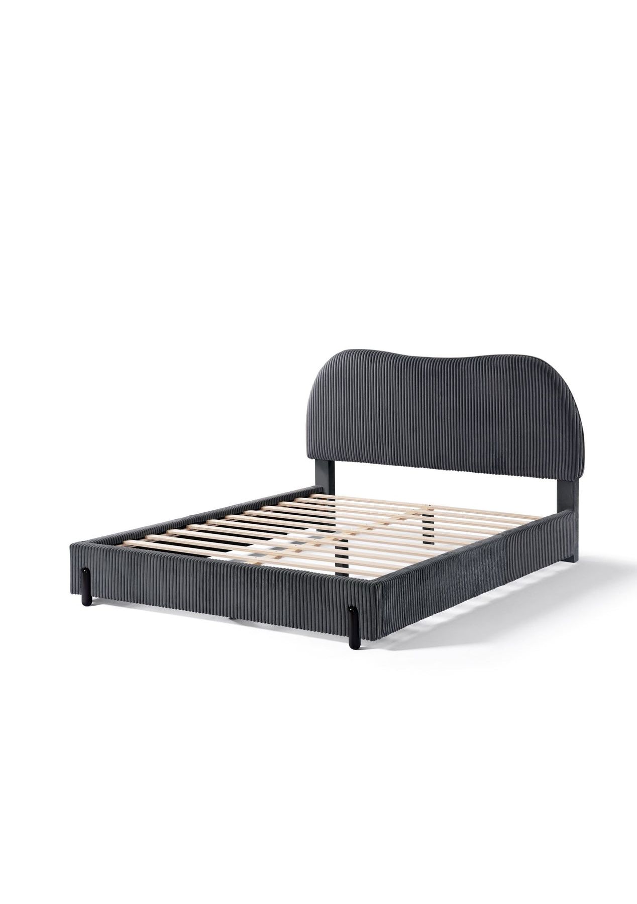 PR65609 Arna Fabric Bed Queen Grey Bring upscale modernity to your bedroom space with this stunningly elegant, sumptuously appointed bed. This full bed has adorned with distinctive textures and elegant vertical lines tufting on the headboard and footboard, adding beauty that instantly catches the eye. The entire bed is upholstered in plush corduroy for a luxurious design. A curved shape and thick padding headboard elevates this bed ultimately comfort, completed its look with the smooth wooden legs. Embracing the essence of Scandinavian style, this Arna bed effortlessly merges minimalist aesthetics with cozy allure, making it a perfect centerpiece for modern and cozy bedrooms alike.NOTE: you are betting the bed frame only, the accessories and decorating items and ottoman are not included in the sales. ==Specifications==* Overall size: 1750*2190*1135mm* Wooden Legs* Inner frame size: 2040*1540mm, fits Queen size mattress.* Material: corduroy, MDF, Particle board* Headboard gap distance: 215mm* 2 carton package/pc, one pcs side rails* Color: Dark grey