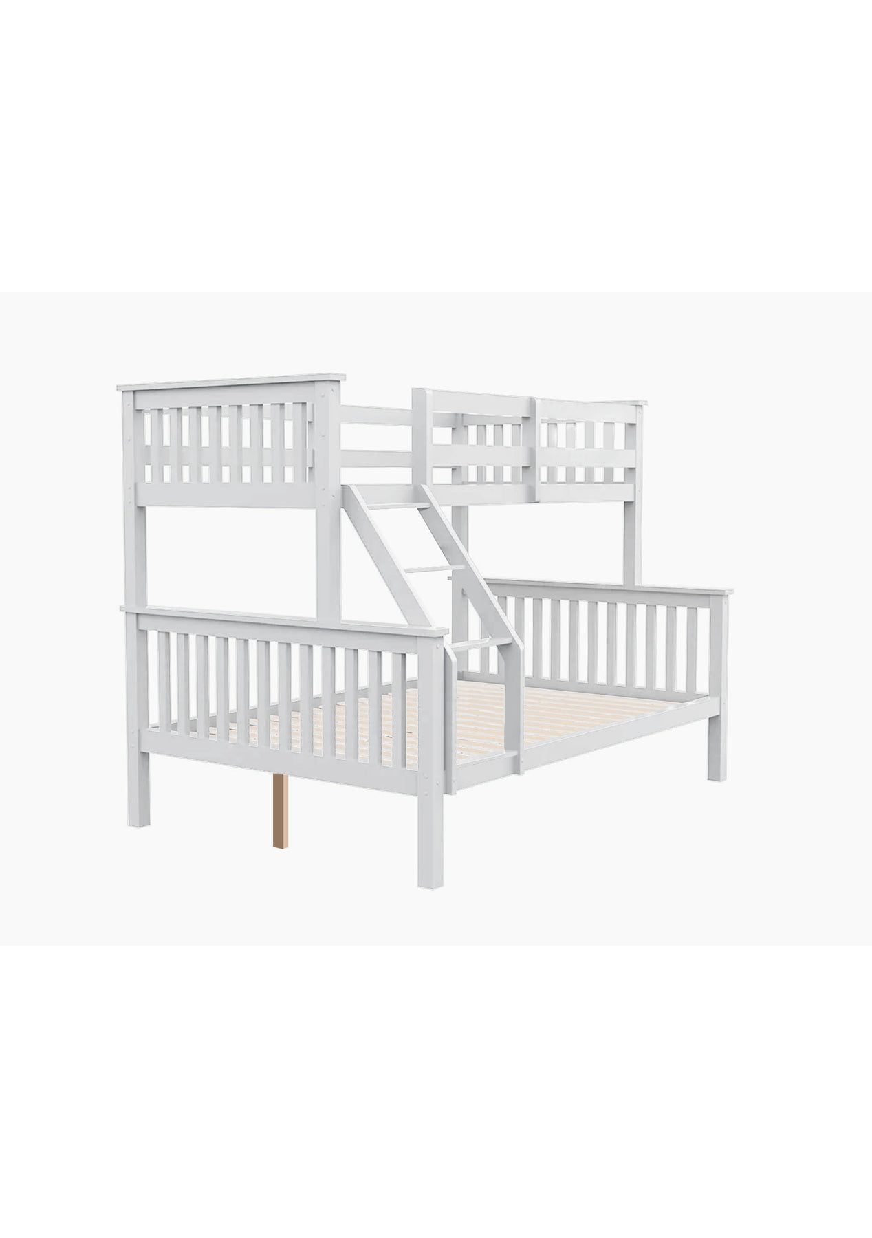 PR12997 Enkel Triple Bunk Bed WhiteVersatility is the key to longevity. This Enkel Triple Bunk Bed allows you to keep up with the growing needs of your family. It starts as a bunk bed with a double bed on the bottom and a single bed on top. Made from solid pine wood, your kids will always feel safe and secure as the design is strong, sturdy, and durable. Access to the top bunk is made easy with a step ladder with extra wide steps for better foot placement and stability. Our space-saving design, with large under-bed storage and finished is the perfect addition to any bedroom. Better yet, as your kids grow out of the bunk bed design, simply convert it into a double and a single bed.Solid timber pine constructionSimple contemporary designFor standard single and double-sized mattressesSturdy securely fixed ladderinstructions and pre-drilled holesConverts to individual single & double bed framesColour: GreyMaterial: Solid PineWeight Capacity: 100kg (top), 250kg (bottom)Product Dimensions (W x L x H): 144 x 199 x 150cmPackage Content1 x Enkel Triple Bunk Bed White1 x Assembly Manual