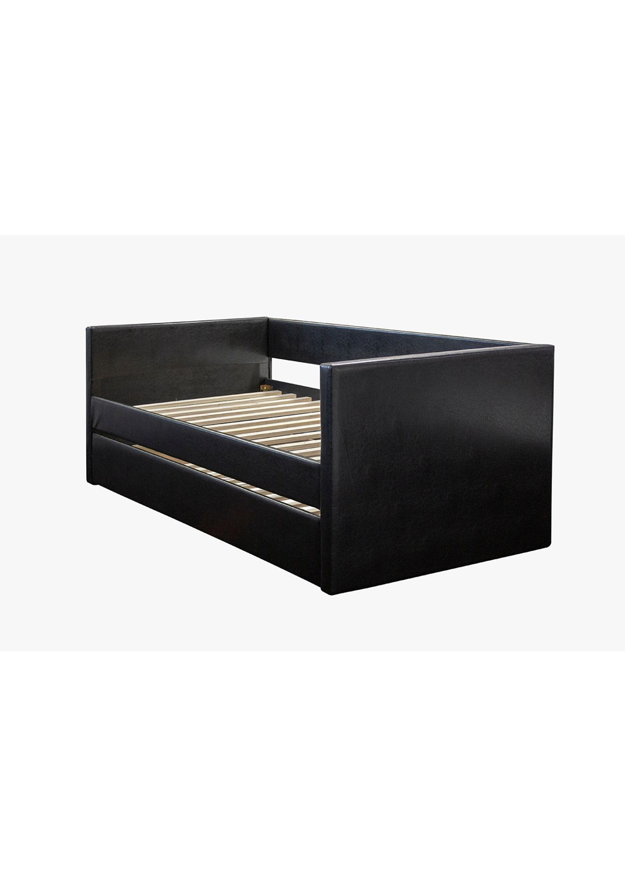 PR666494 The Manson Day Bed is a Truly Classically styled Guest/Daybed. Beautifully Upholstered in Black Faux Leather. This beautiful, classic-looking metal day bed offers a comfortable sofa in the day but can easily be turned in a guest bed at night.It's the perfect solution for when space is limited, for a guest room or simply where a spare bed is required.Serves as a sofa and a daybed and has a pull-out trundle bedÔºõPull-out trundle bed fits a twin-size mattress, offering additional sleeping space ;Includes:*Sofa/daybed*Sides*Trundle*Wood/foam/PU leather*100% foam filling*Spot clean onlyFull daybed measures: 2070*990*740mm overall;Full trundle measures:1935*960*255 overallColor: Black PUMattress not includedLight assembly required