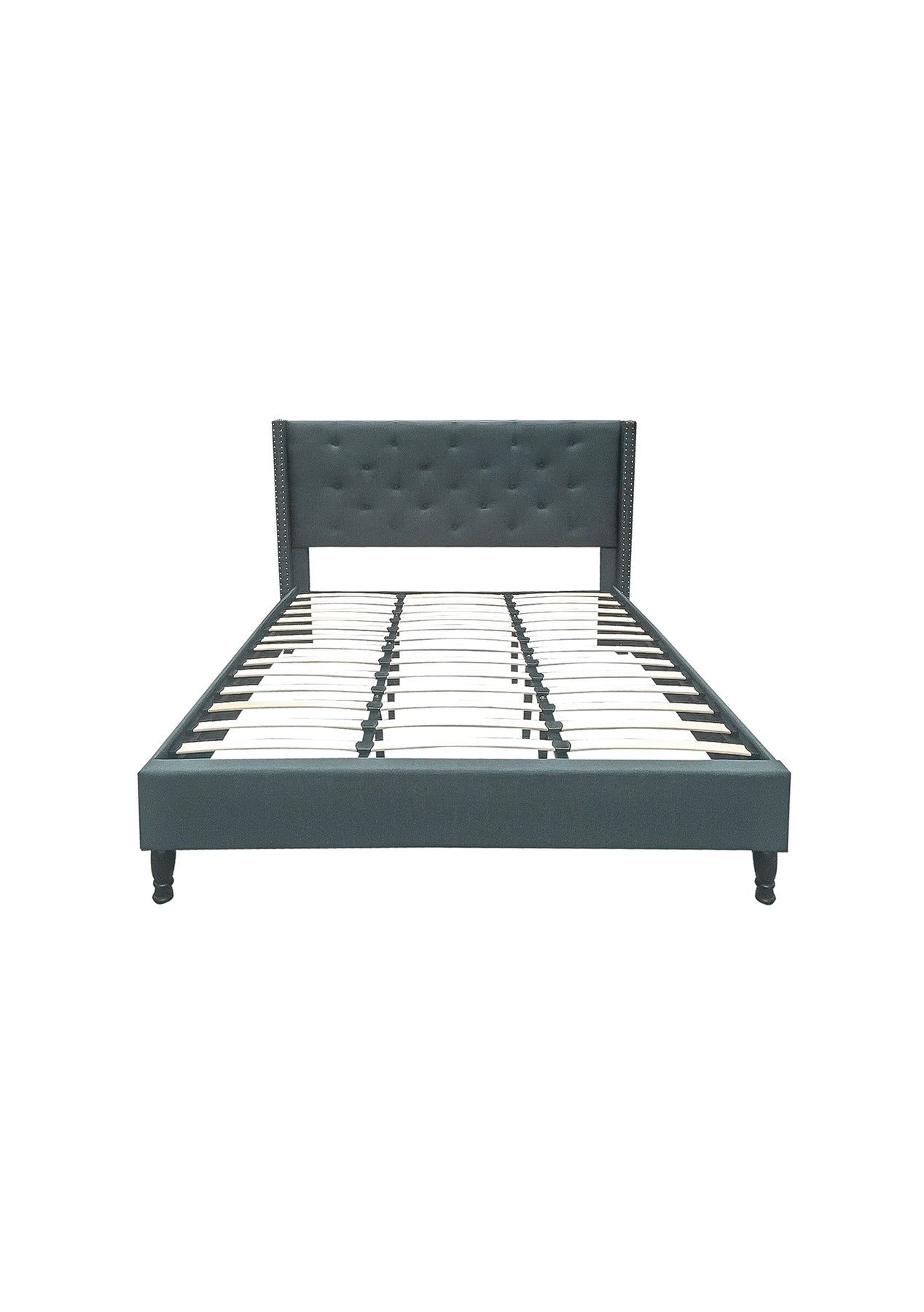 PR6665520 - T New Lisbeth Fabric Bed Frame King Blue This new luxurious fabric Lisbeth bed frame in King size will give your room an elegant touch in style. The bed comes with a dashing tufted headboard that also includes metal studded detailing on the sides of the bed that gives a modern twist with the classy design. King sized Mattresses fit perfectly to this bed as it includes strong supportive flexible slabs that will provide anyone with a restful night.Features:- simple design with an elegant tufted detailing- The bed comes with flexible slats for that extra comfort - The panels of the bed have wood inside and a beautiful fabric on the outside giving it that elegant look.- Fits a standard Nz King Mattress.- Color: Blue- Simple assembly requiredoverall size: 220x172x129cmheadboard height:129cmfootboard height:39cm Height from Floor to Base: 14cm Weight Limit including Mattress - 300kgs ***Please note that the listing is only for the bed frame only*** It comes in 2 boxes.Box dimensions: BoxA: 176x73x12CMBoxB: 212x26x18CM