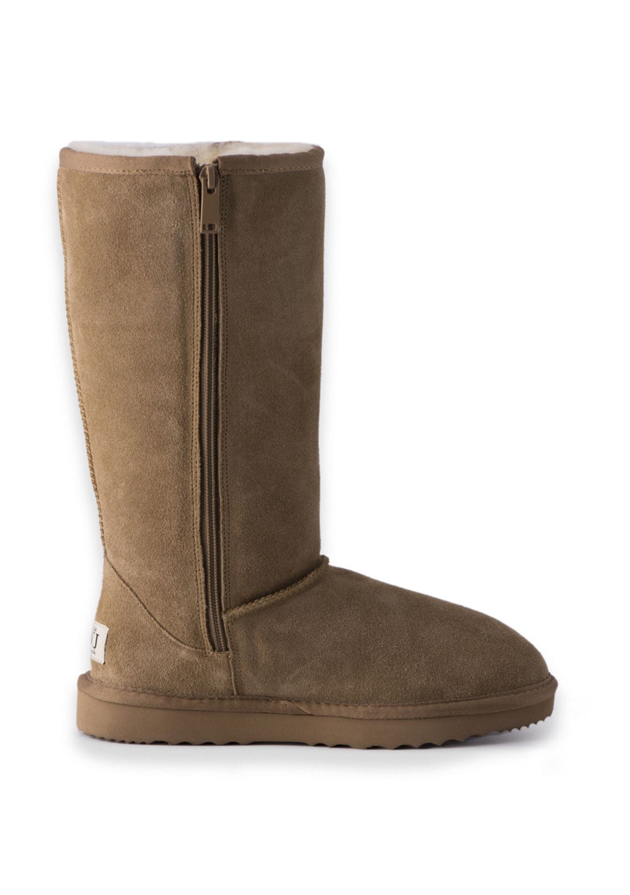 Aus Wooli -Tall Zip-Up Sheepskin Boot - Chestnut/Tan