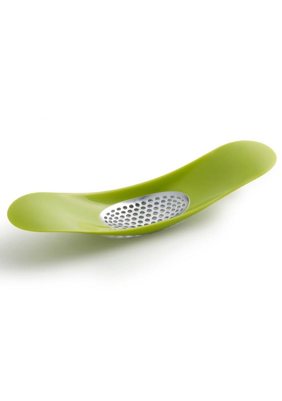 Crush garlic in no time at all with this garlic rocker. Press and rock this garlic presser in a downwards motion to crush garlic cloves quickly and efficiently. The way this mechanism works is by forcing the pieces through the mesh of holes in its base. Then spoon the garlic pieces from the crusher into your bowl or pan. Features Crushed pieces are held in the curved design, allowing them to be spooned or scraped conveniently into a pan or bowl Additional cloves can also be crushed at this stage before emptying Continue rocking for a finer texture Rocker is easy to clean under running water but is also dishwasher safe Handles either side to avoid hand odour Food Safe BPA Free Dishwasher safe